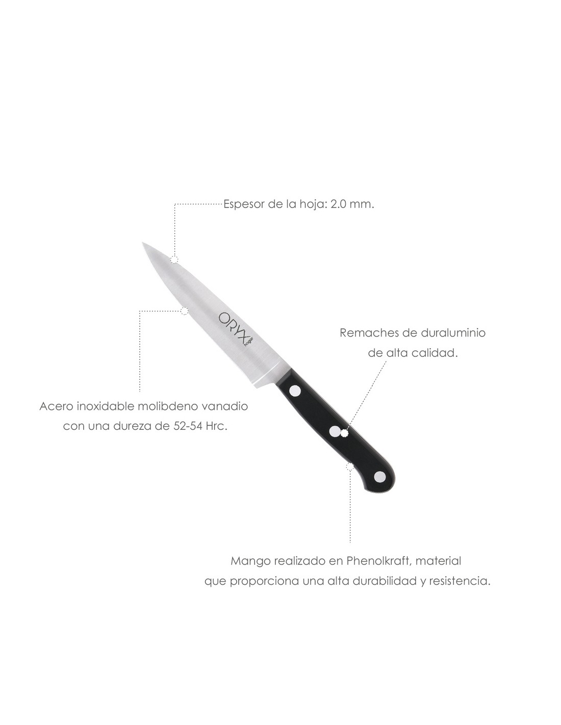 - Hoja realizada en acero inoxidable molibdeno vanadio con una dureza de 52-54 hrc.