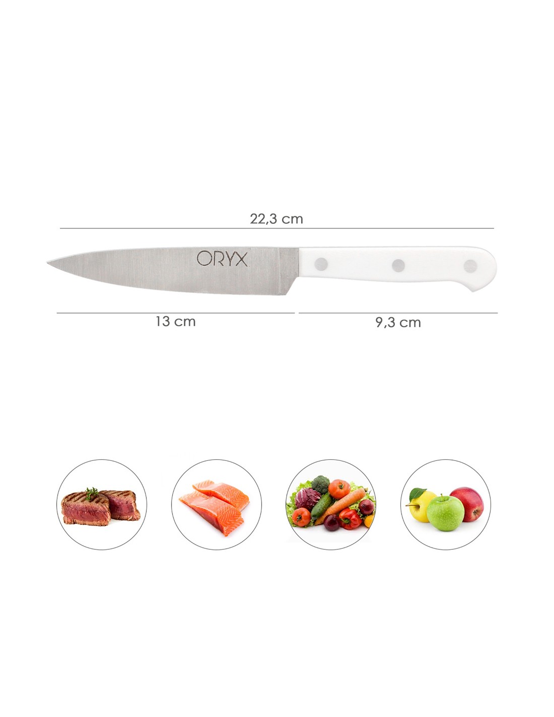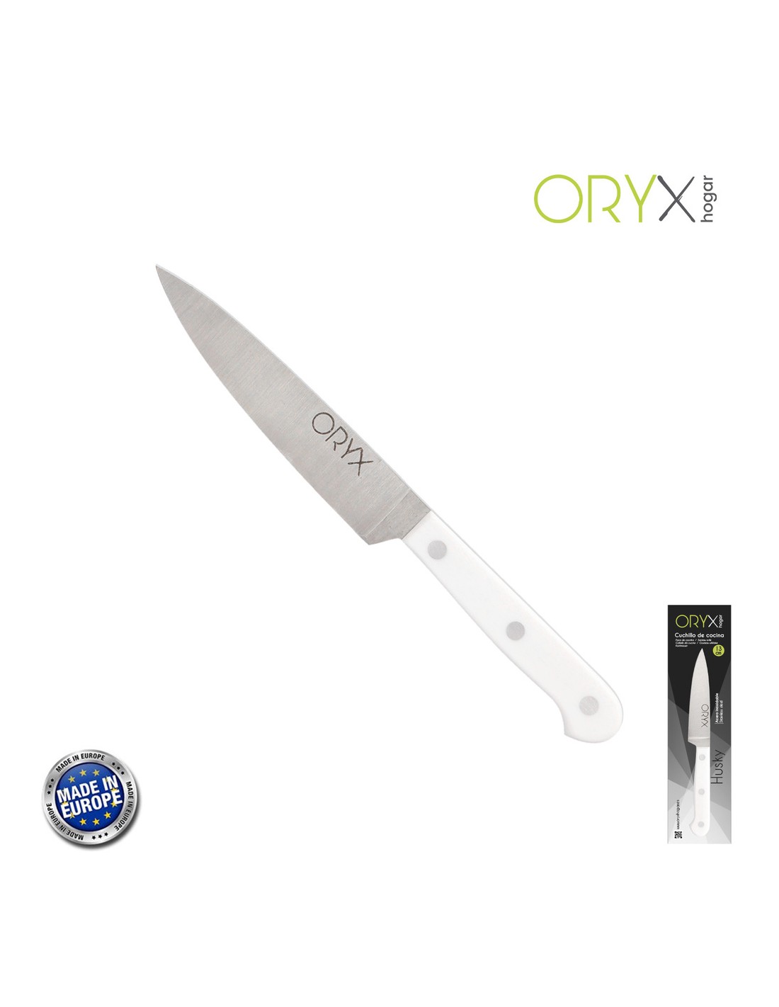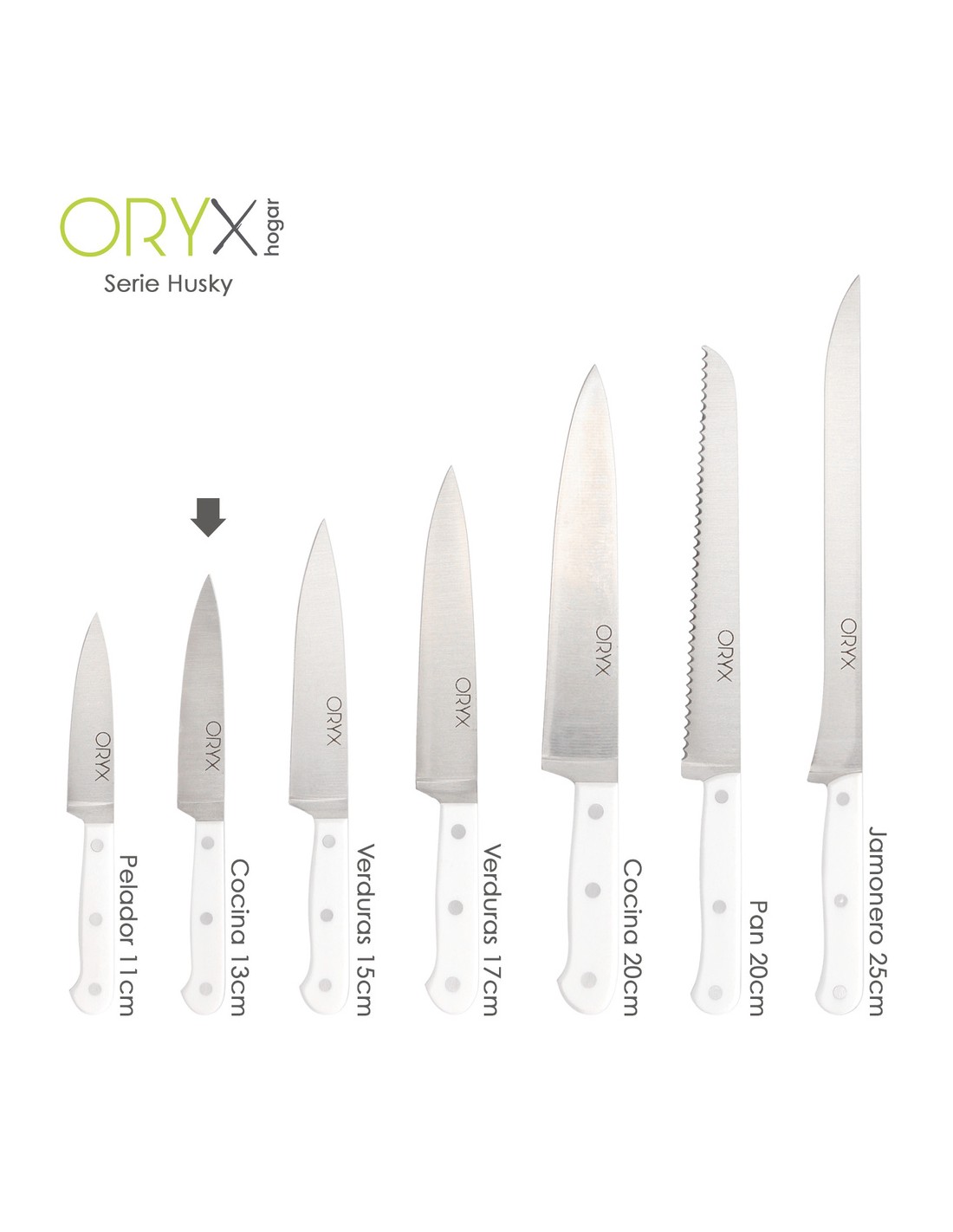 Cuchillo Husky Cocina 13 cm. Hoja Acero Inoxidable, Cuchillo Carne, Cuchillo Pescado, Cuchillo Chef, Mango Ergonomico Blanco