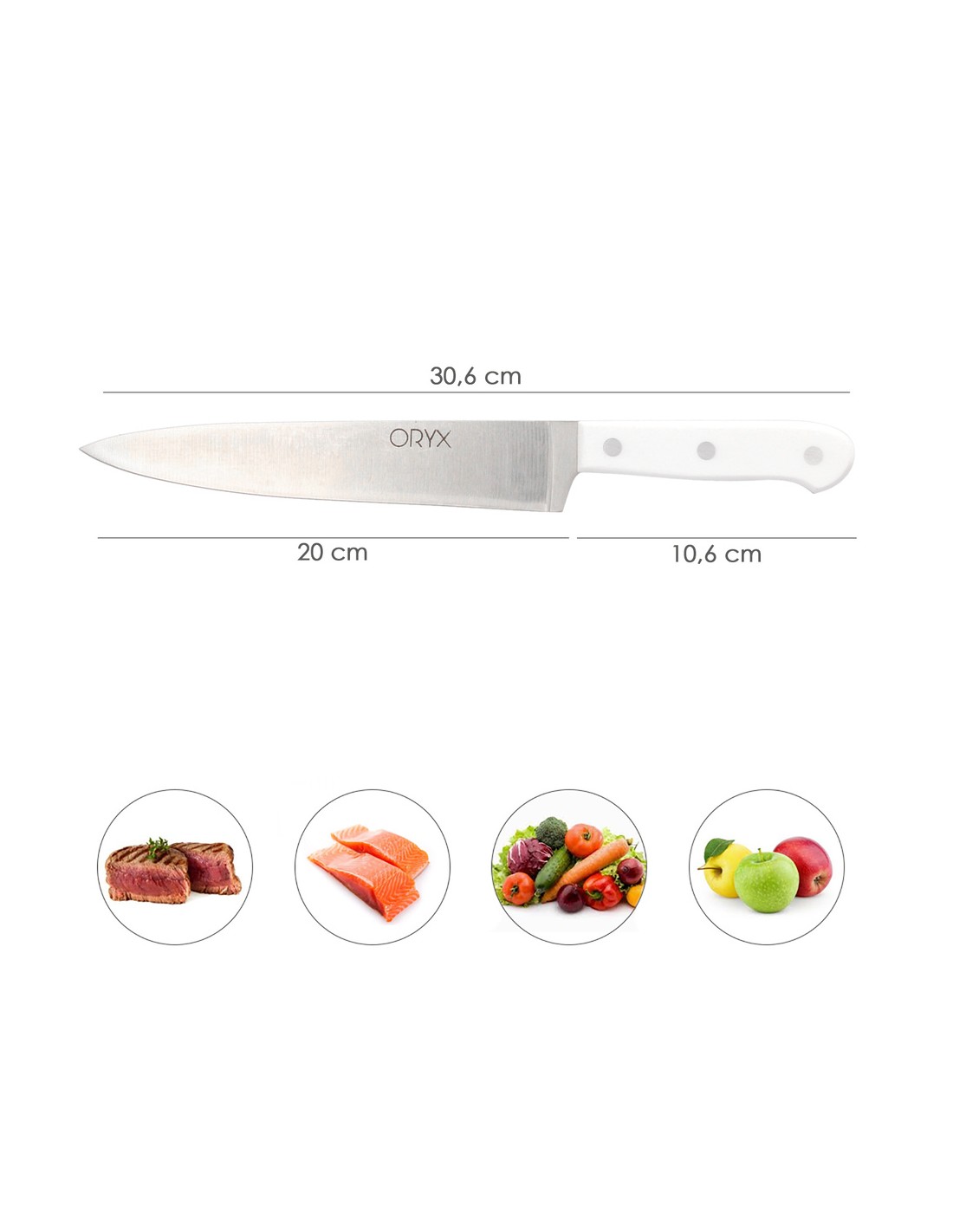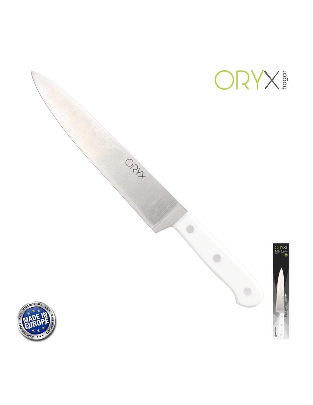 Cuchillo Husky Cocina 20 cm. Hoja Acero Inoxidable, Cuchillo Carne, Cuchillo Pescado, Cuchillo Chef, Mango Ergonomico Blanco