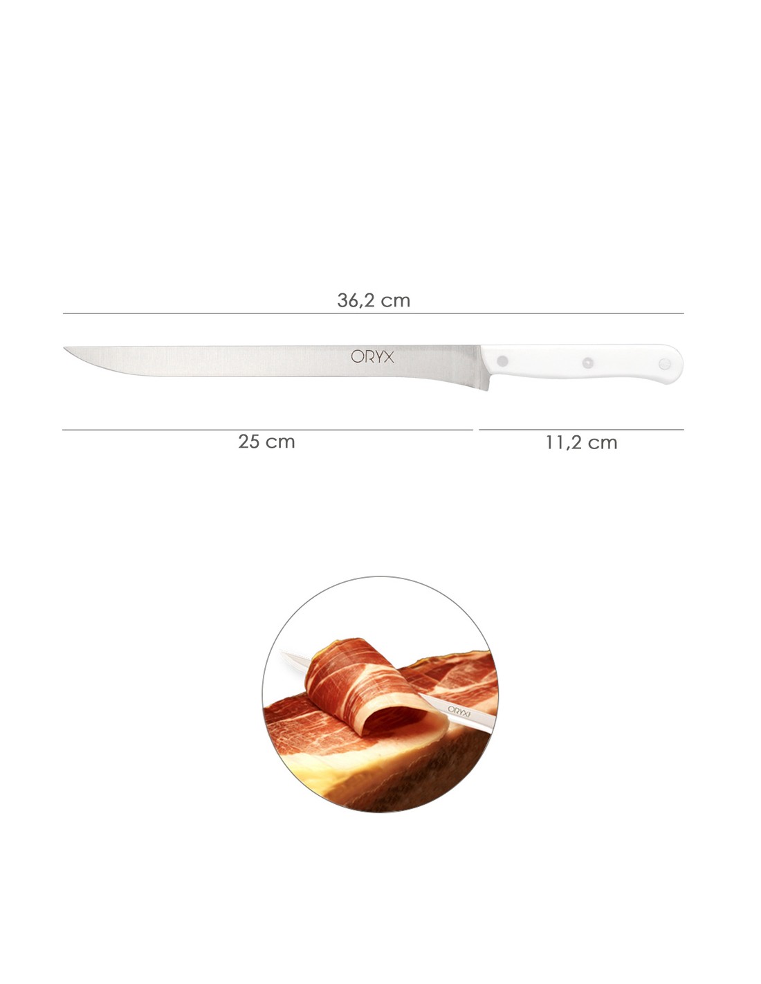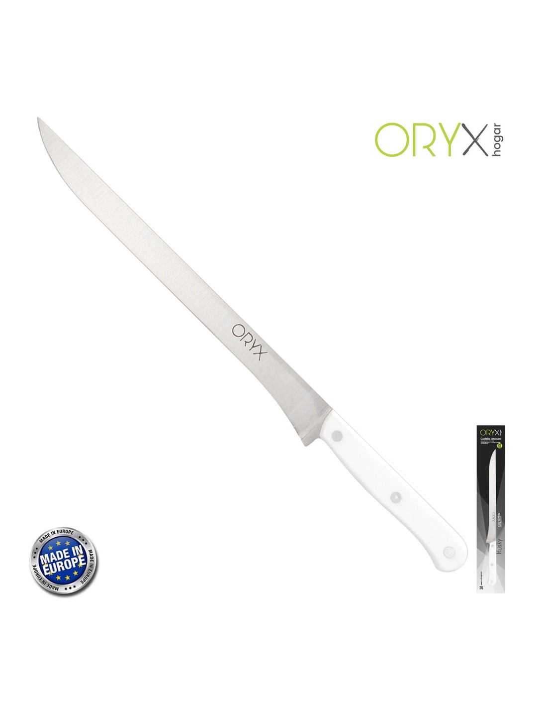 Cuchillo Husky Jamonero 25 cm. Hoja Acero Inoxidable, Cuchillo Jamon, Cuchillo Cortar Jamon Mango Ergonomico Blanco