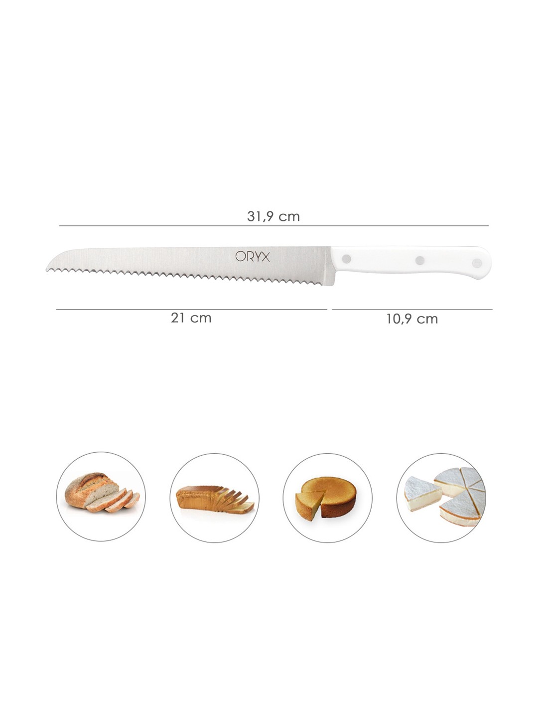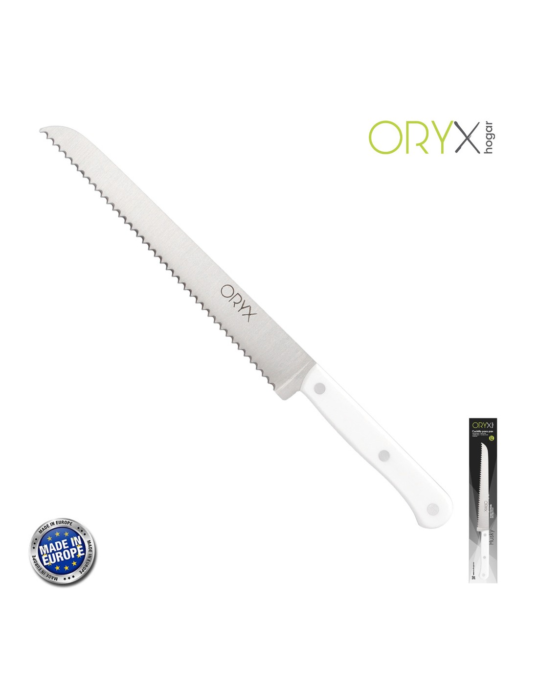Cuchillo Husky Panero 21 cm. Hoja Acero Inoxidable, Cuchillo Pan , Cuchillo Cortar Pan Mango Ergonomico Blanco
