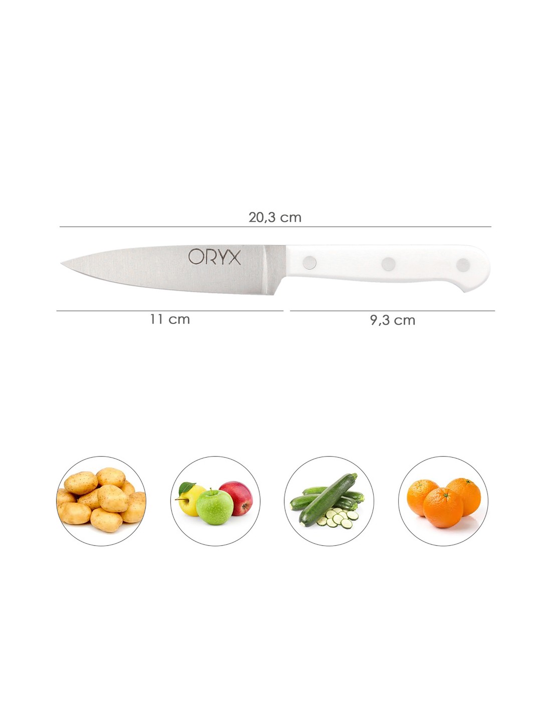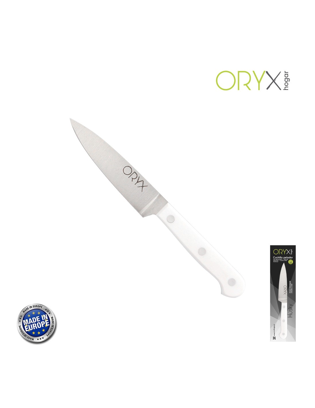 Cuchillo Husky Pelador 11 cm. Hoja Acero Inoxidable, Cuchillo Verduras, Cuchillo Cortar Verduras Mango Ergonomico Blanco