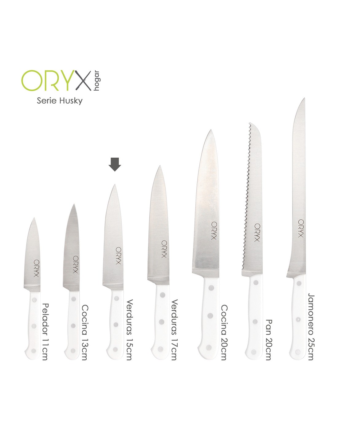 Cuchillo Husky Verduras 15 cm. Hoja Acero Inoxidable, Cuchillo Verduras, Cuchillo Cortar Verduras Mango Ergonomico Blanco