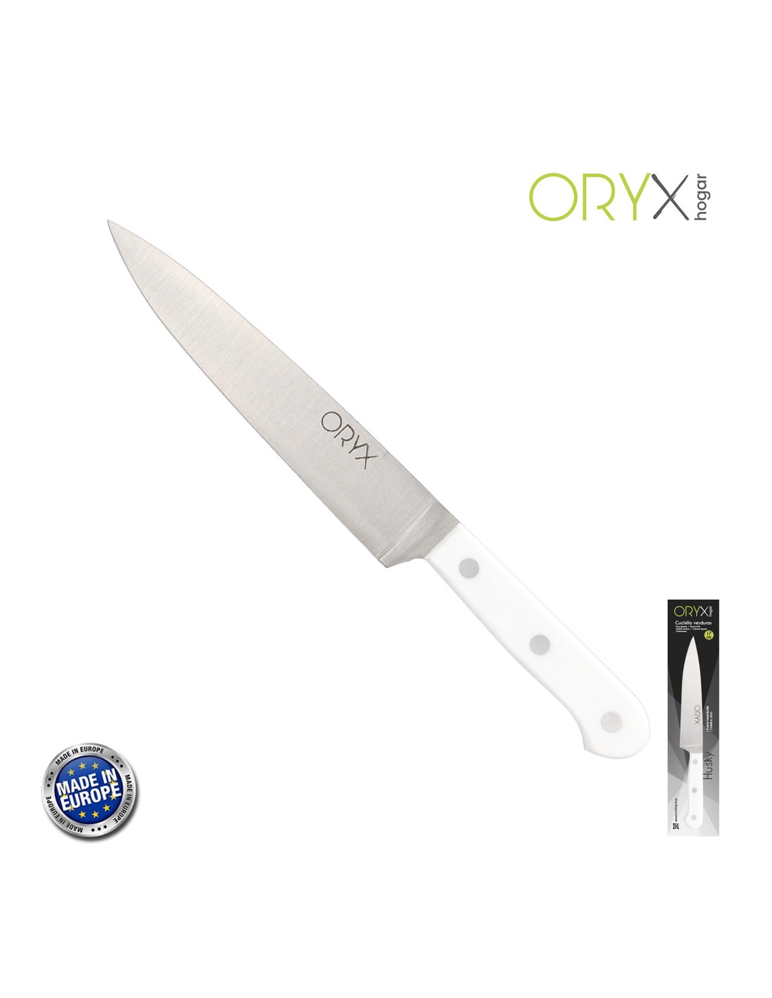 Cuchillo Husky Verduras 17 cm. Hoja Acero Inoxidable, Cuchillo Verduras, Cuchillo Cortar Verduras Mango Ergonomico Blanco