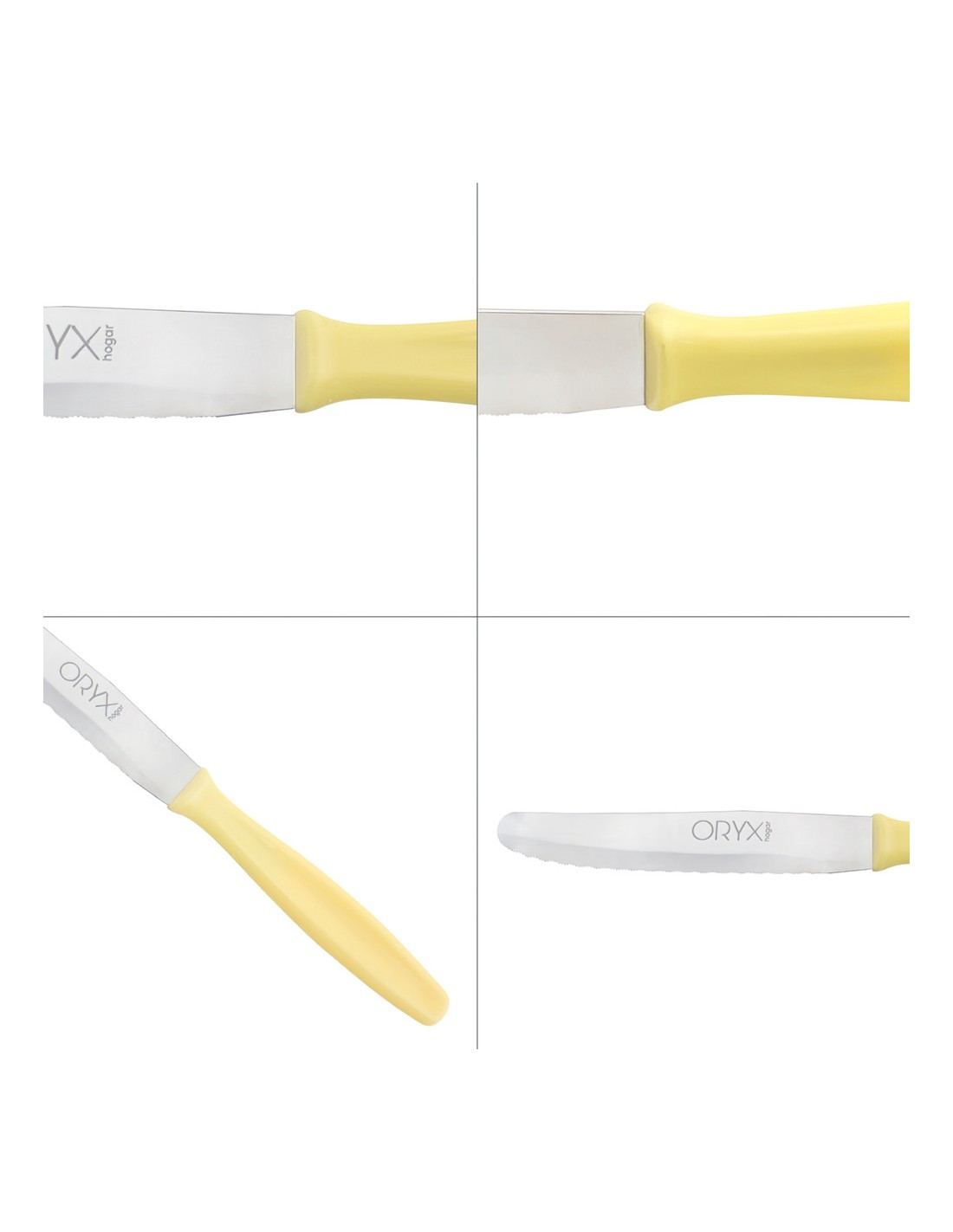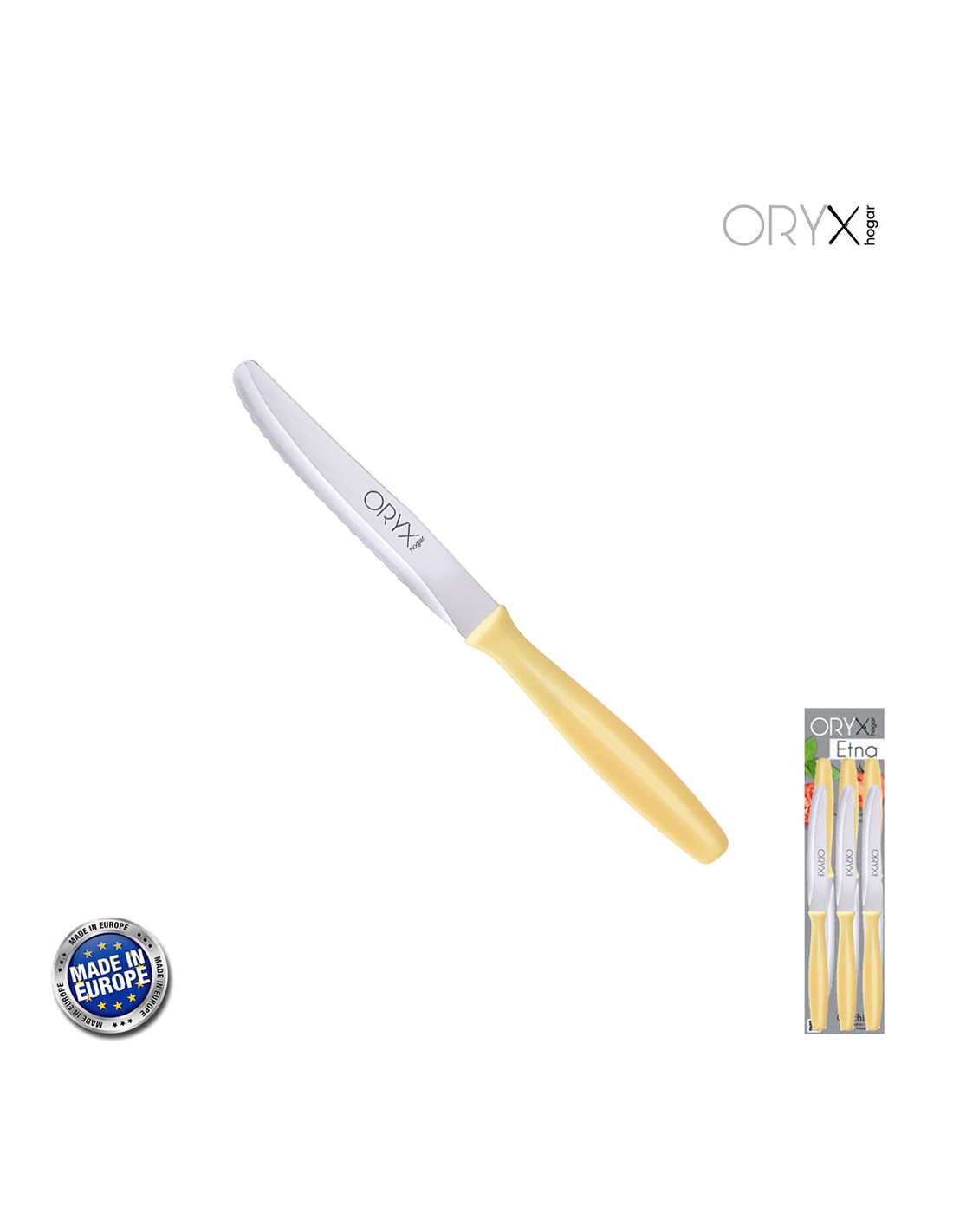 Cuchillo Mesa Etna Hoja Sierra Acero Inoxidable 10 cm. Amarillo (Blister 6 piezas)