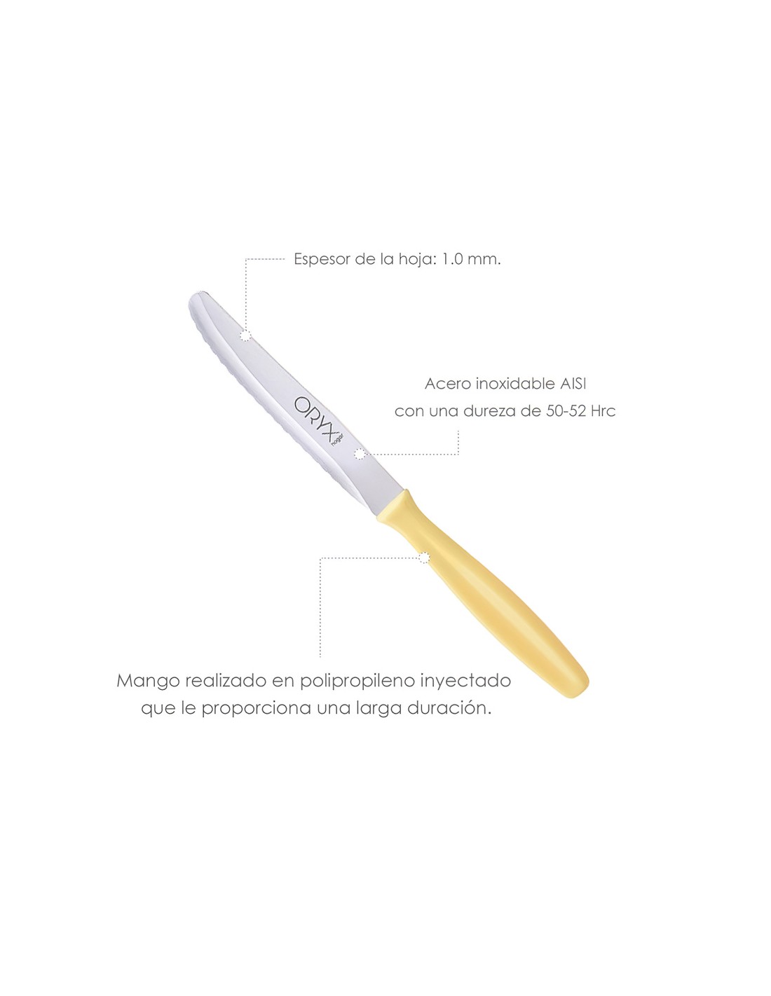 - Hoja realizada en acero inoxidable aisi 420 con una dureza de 50-52 hrc.