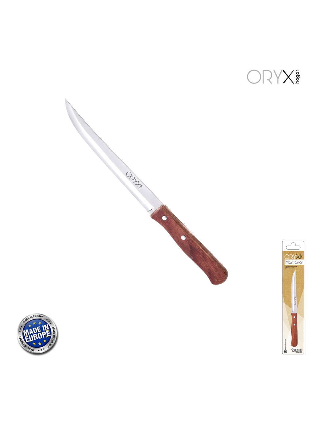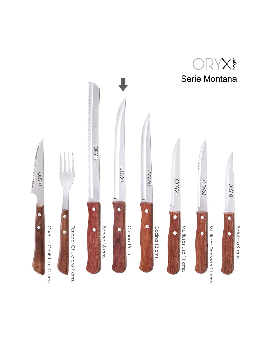 - La serie Montana se define por su parecido con maderas naturales, fabricados en acero inoxidable, de hoja estrecha y mango de madera prensada, se trata de un diseño clasico, funcional y resistente, caracteristicas que hacen que su duración sea larga, incluso con usos frecuentes.