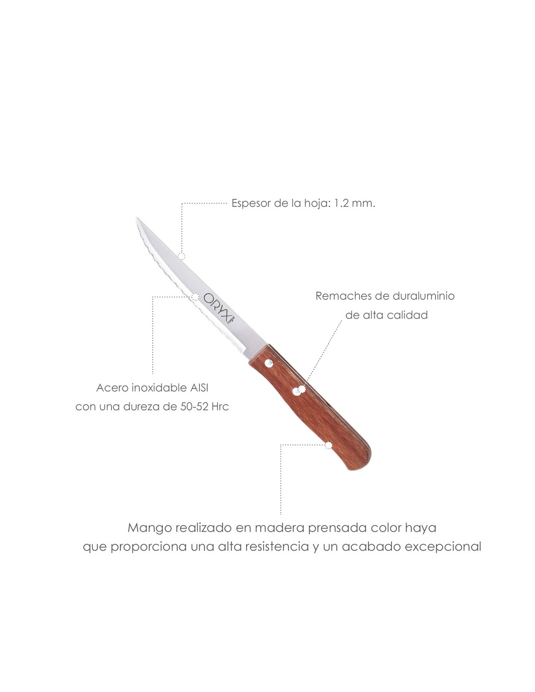- Hoja realizada en acero inoxidable aisi 420 con una dureza de 50-52 hrc.