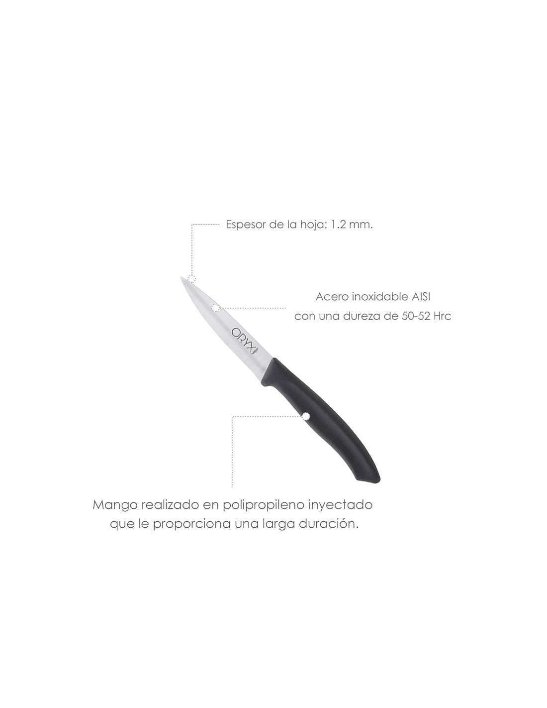 - Hoja realizada en acero inoxidable aisi 420 con una dureza de 50-52 hrc.
