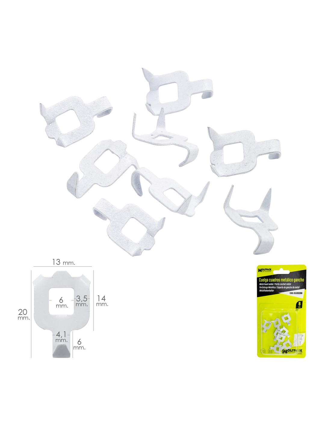 Cuelga Cuadros Metalico Gancho Blister 8 Piezas