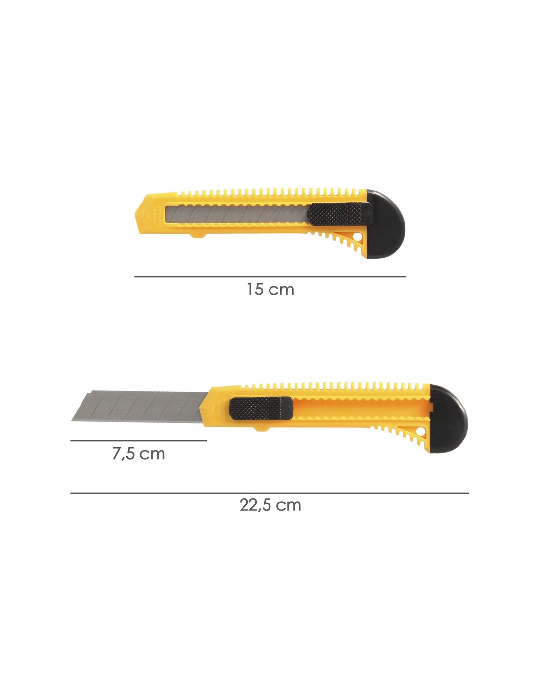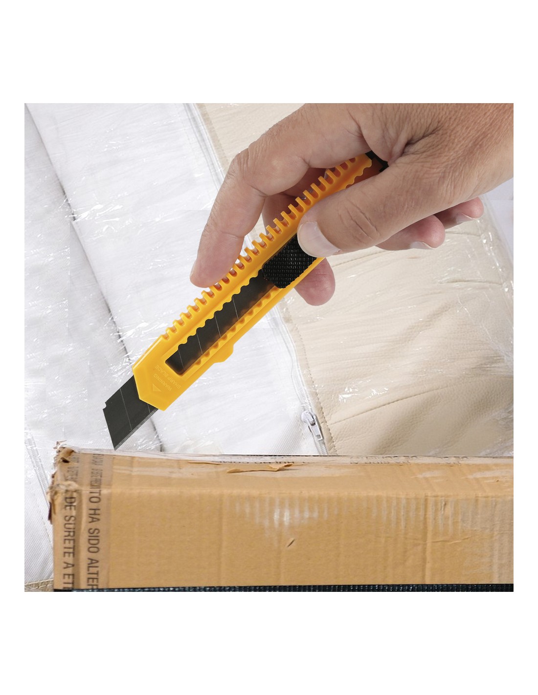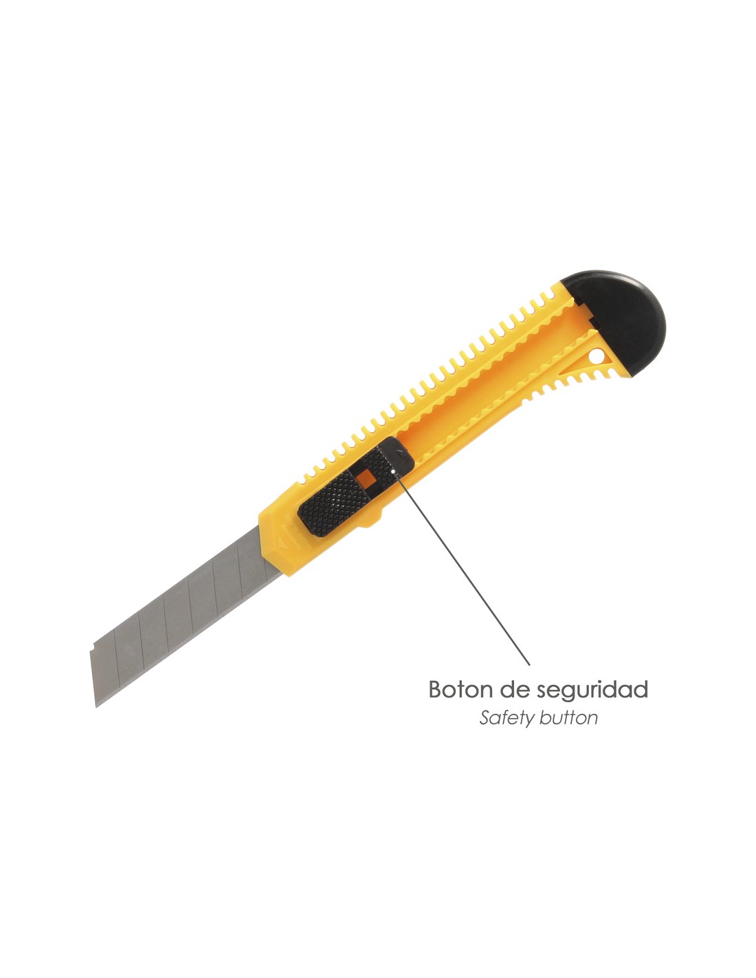 - Ideal para: corte de papel, cartulinas, manualidades, apertura de paquetes o cajas de cartón, corte de alfombras y tapicería, corte de vinilos desembalaje de productos, etc.