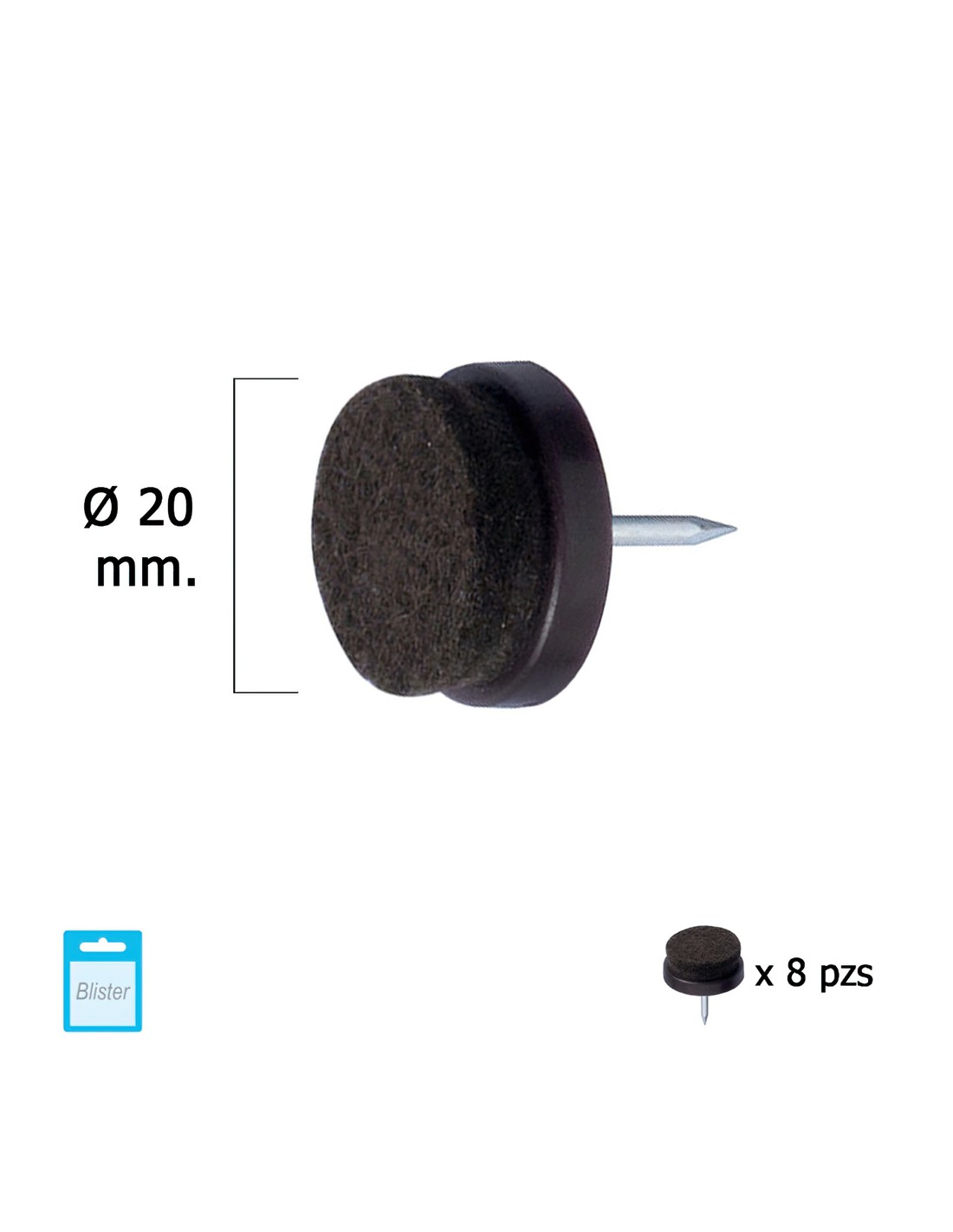 Deslizante Marron Con Fieltro Ø20 (Blister 8 Unidades)