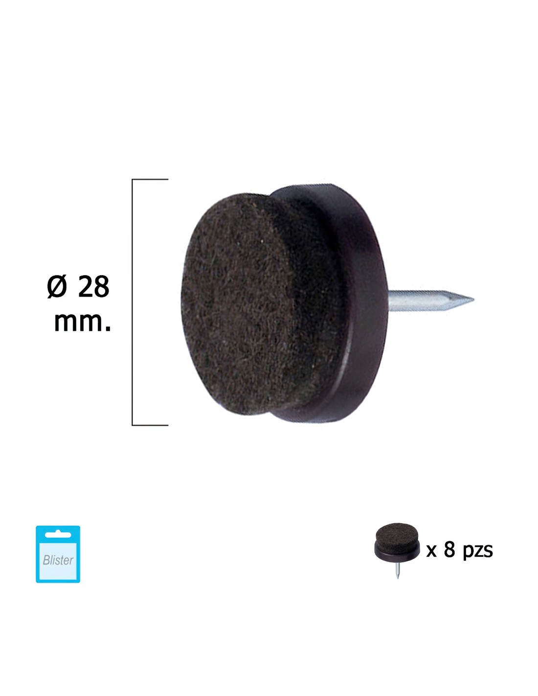 Deslizante Marron Con Fieltro Ø28 (Blister 8 Unidades)