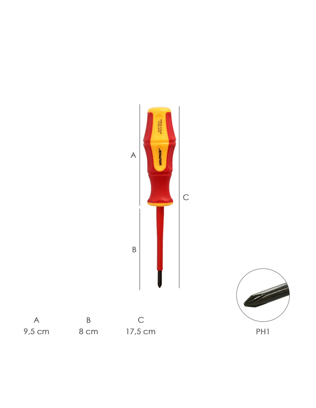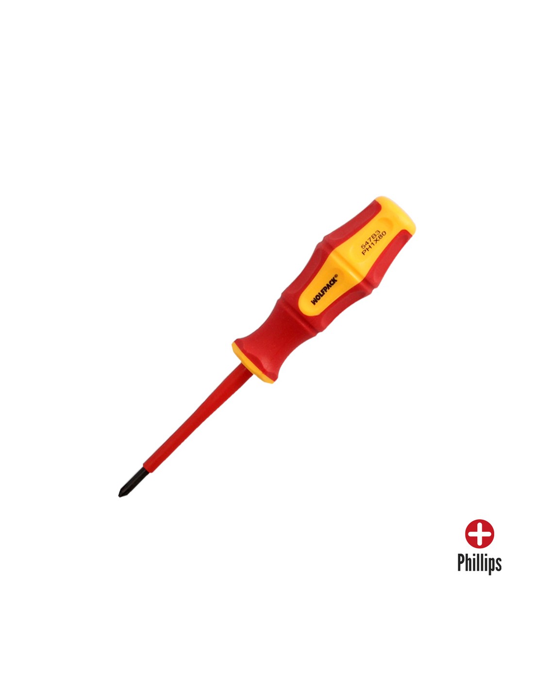 Destornillador Phillips Aislado Certificado VDE 1.000 V. Medida PH 1 - 4,5 x 80 mm. Destornillador Seguridad Electricista