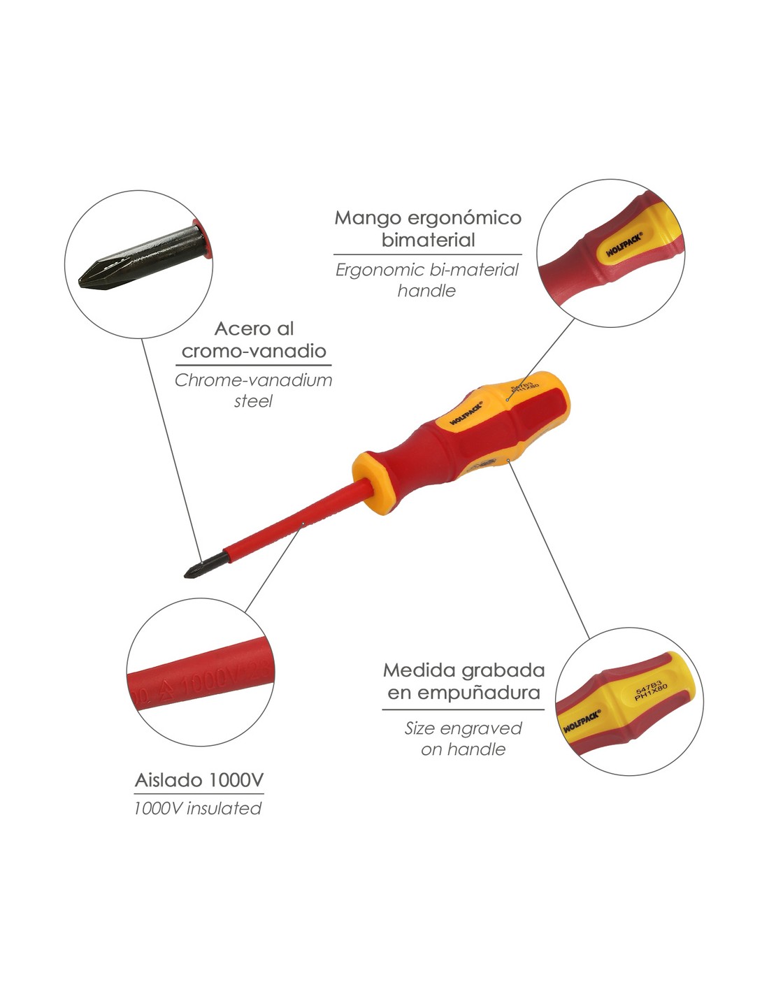 - Mango aislado con certificación VDE de 1.000 V.
