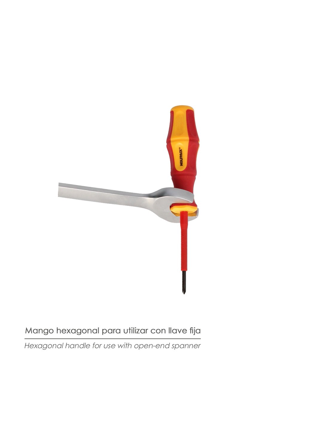 - Mango con acabado hexagonal para poder usar una llave fija o una llave inglesa y aumentar la fuerza de apriete.