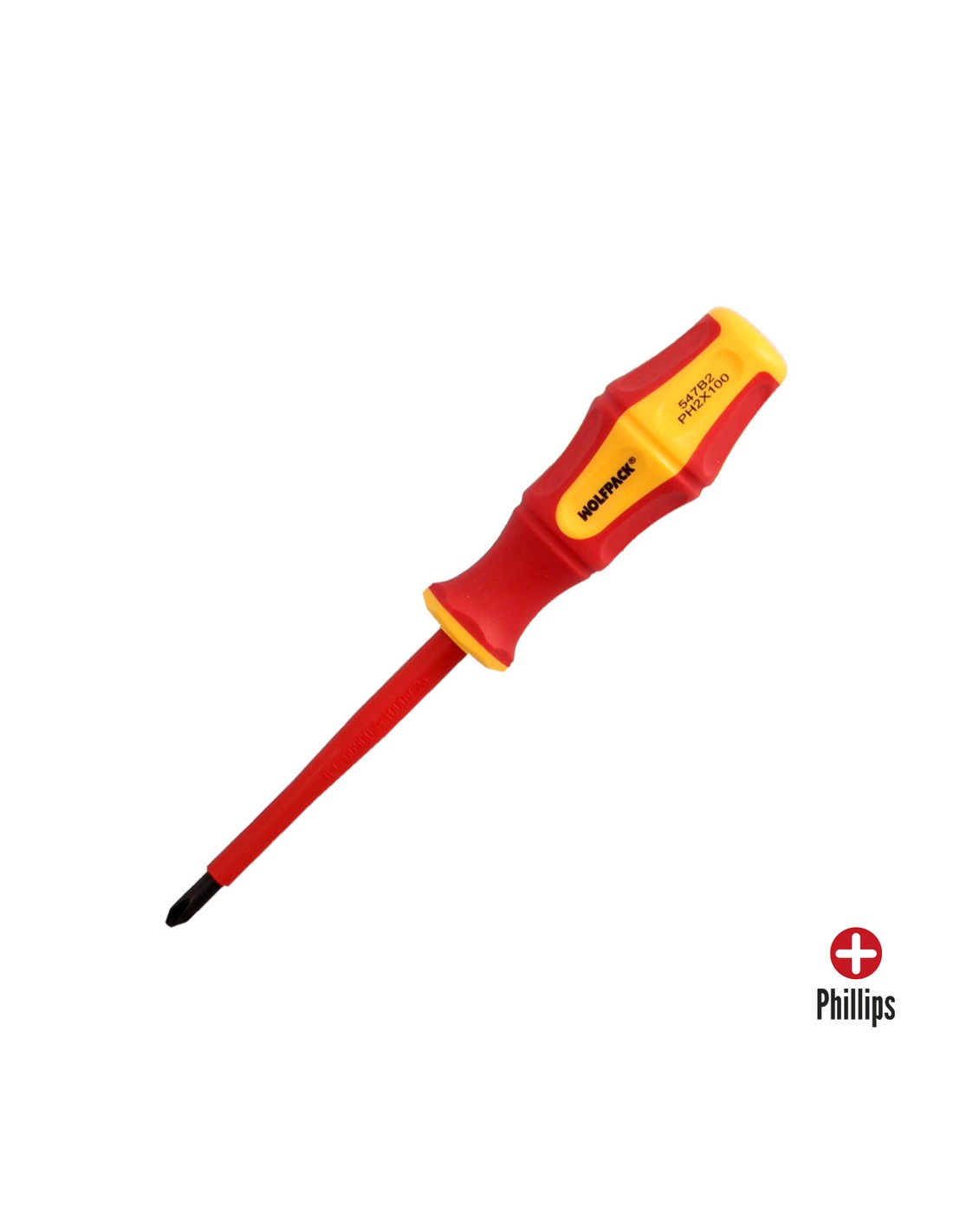 Destornillador Phillips Aislado Certificado VDE 1.000 V. Medida PH 2 - 6,0 x 100 mm. Destornillador Seguridad Electricista