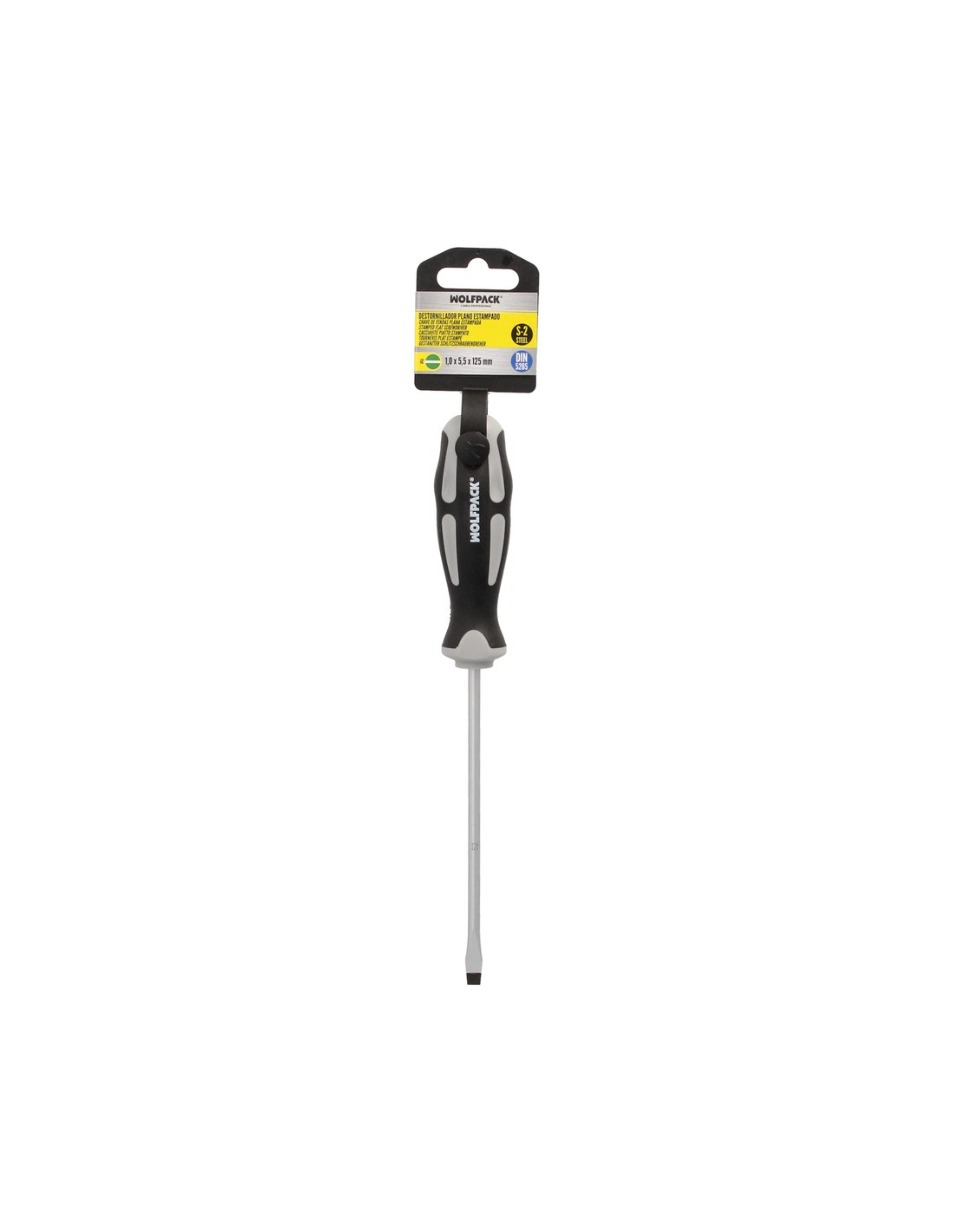 Destornillador Plano Estampado Acero S2 Mango TPR Bimaterial. Medida 1,0 x Ø 5,5 x 125 mm. DIN5265