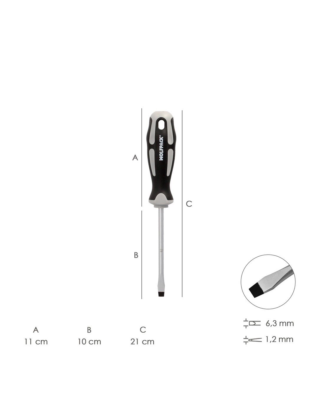 Destornillador Plano Estampado Acero S2 Mango TPR Bimaterial. Medida 1,2 x Ø 6,5 x 100 mm. DIN5265