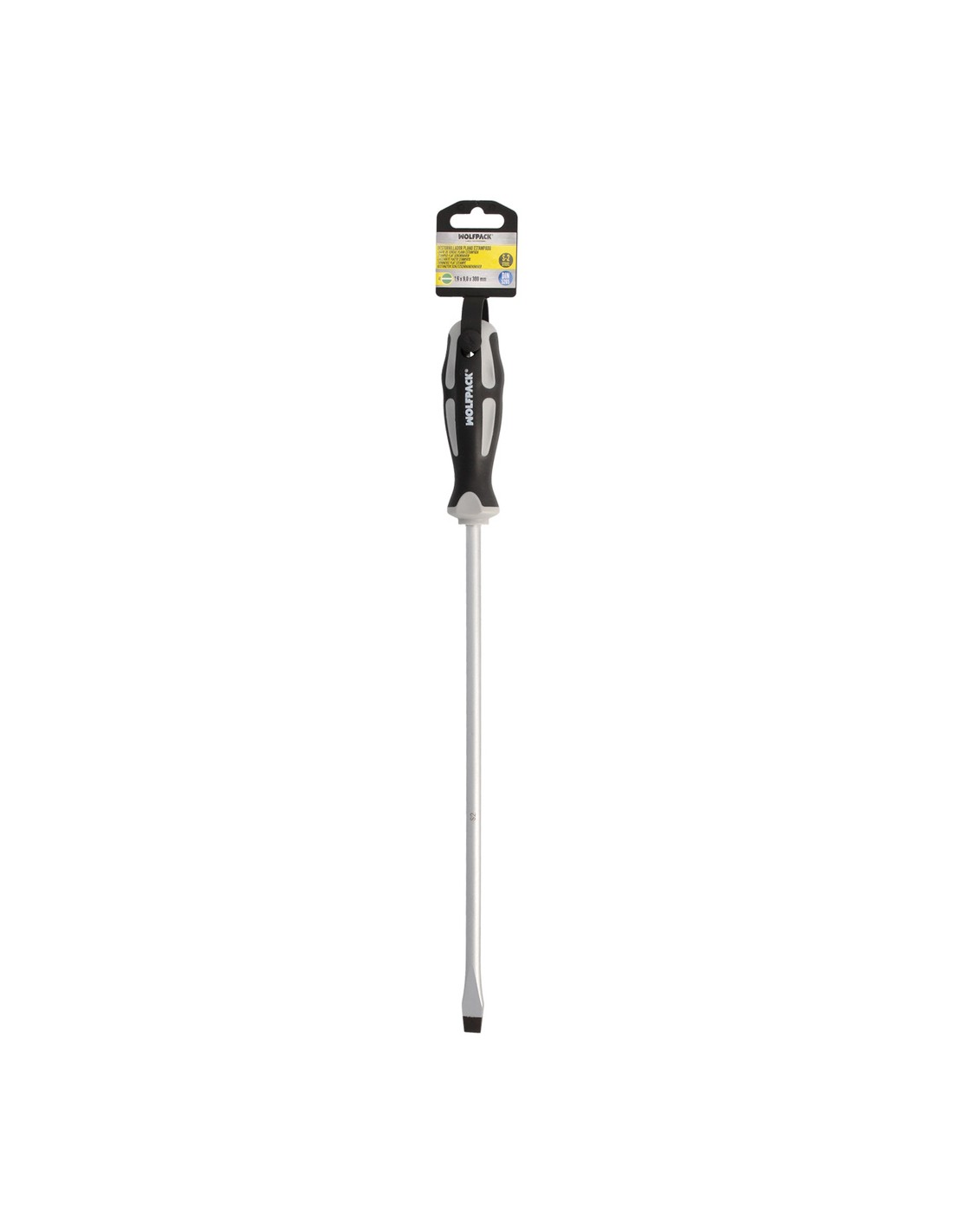 Destornillador Plano Estampado Acero S2 Mango TPR Bimaterial. Medida 1,6 x Ø 9,0 x 300 mm. DIN5265
