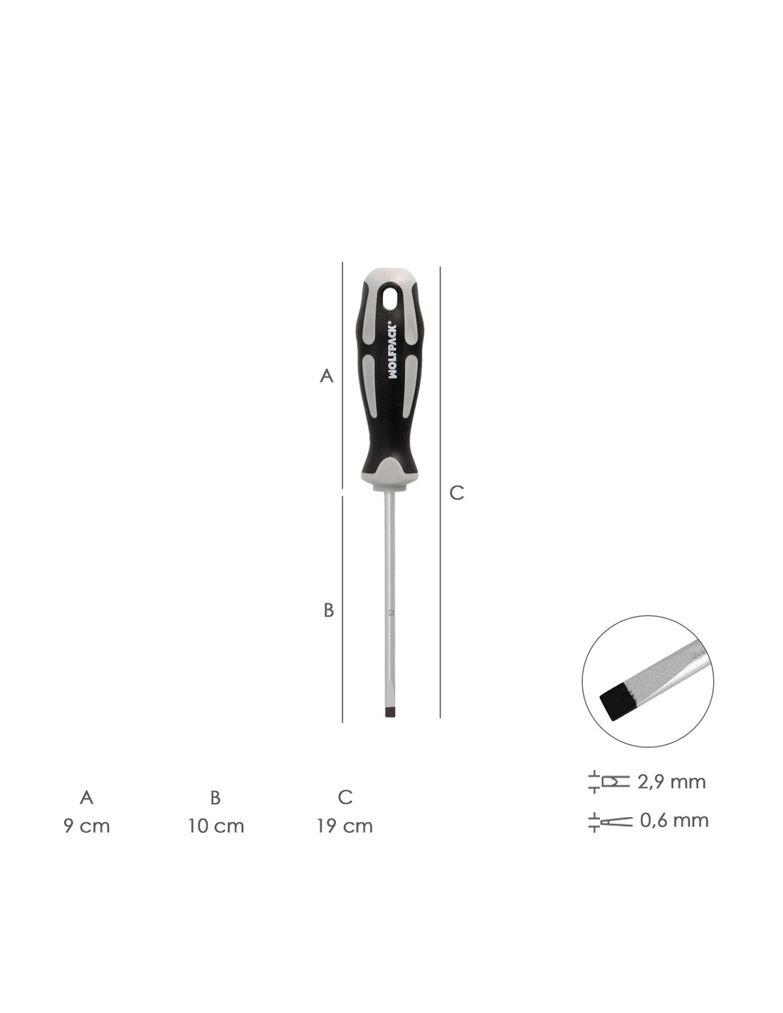 Destornillador Plano Vaciado Acero S2 Mango TPR Bimaterial. Medida 0,5 x Ø 3,0 x 100 mm. DIN5265