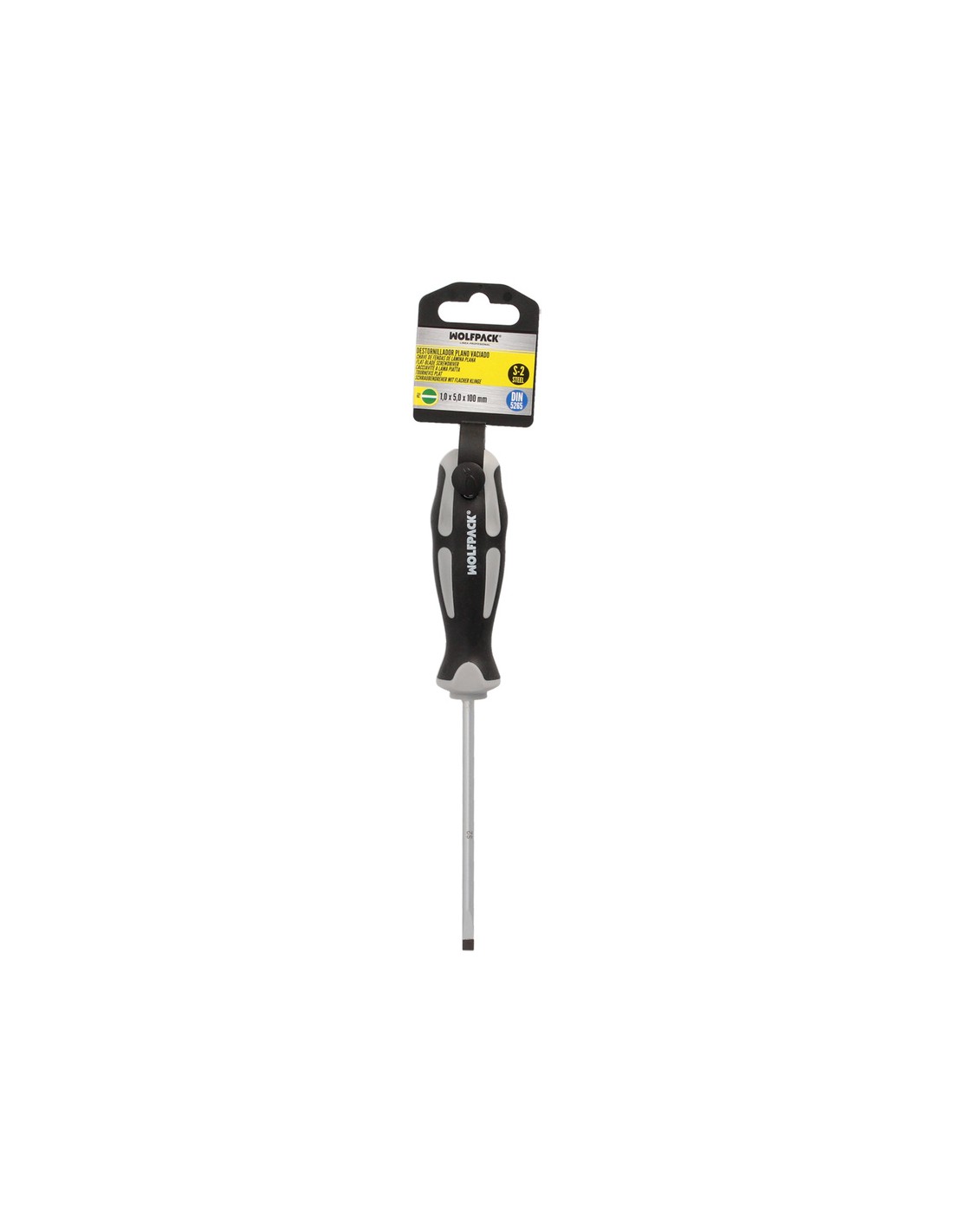 Destornillador Plano Vaciado Acero S2 Mango TPR Bimaterial. Medida 1,0 x Ø 5,0 x 100 mm. DIN5265