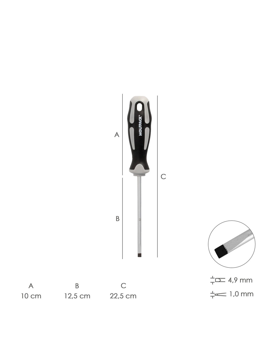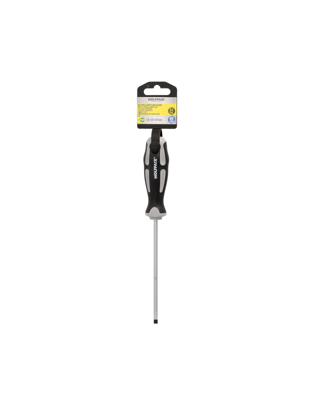 Destornillador Plano Vaciado Acero S2 Mango TPR Bimaterial. Medida 1,0 x Ø 5,0 x 125 mm. DIN5265