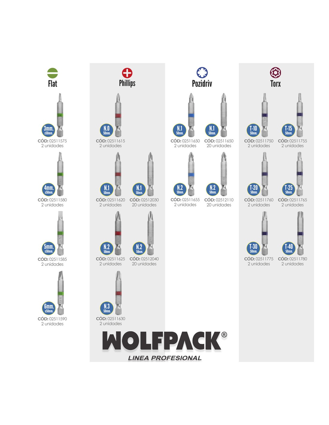 Puntas Largas Destornillador Pozidriv.