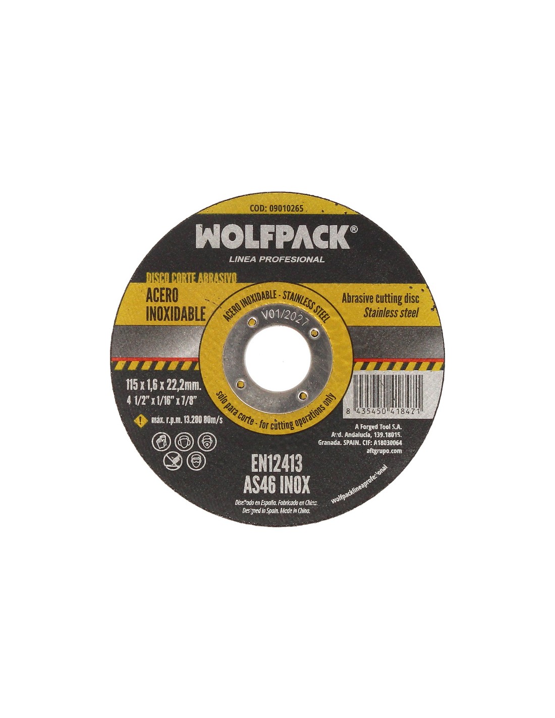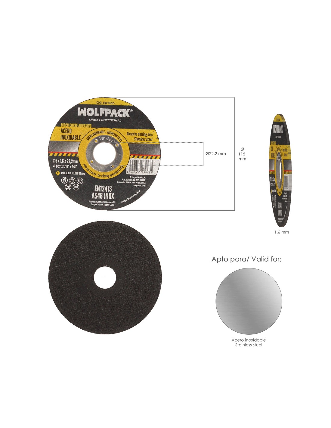 Disco Corte Abrasivo Acero Inoxidable Ø 115x Ø 22,2 mm Espesor 1,6 mm. Disco Radial / Amoladora Universal