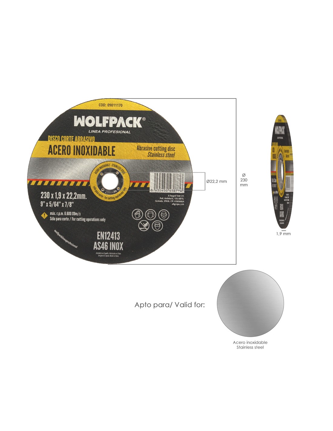 Disco Corte Abrasivo Acero Inoxidable Ø 230x Ø 22,2 mm Espesor 1,9 mm Disco Radial / Amoladora Universal Con Todas Las Amoladora