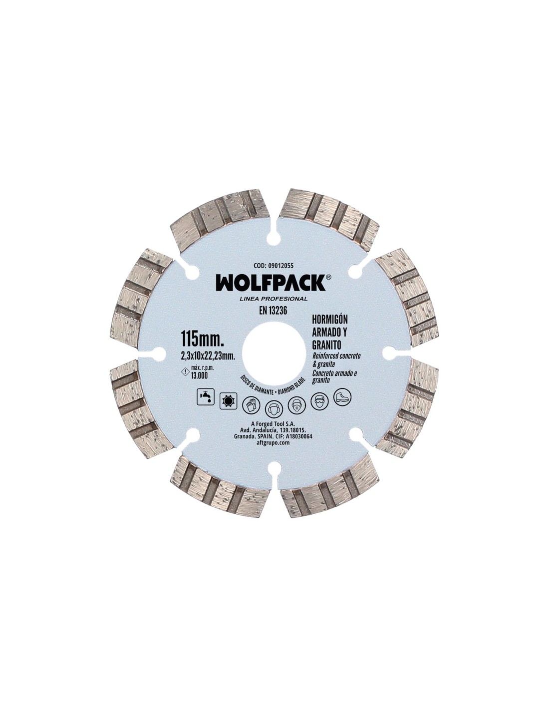 Disco Diamante Hormigon Armado / Granito Ø 115 mm. Segmento Diamantado 10 mm.