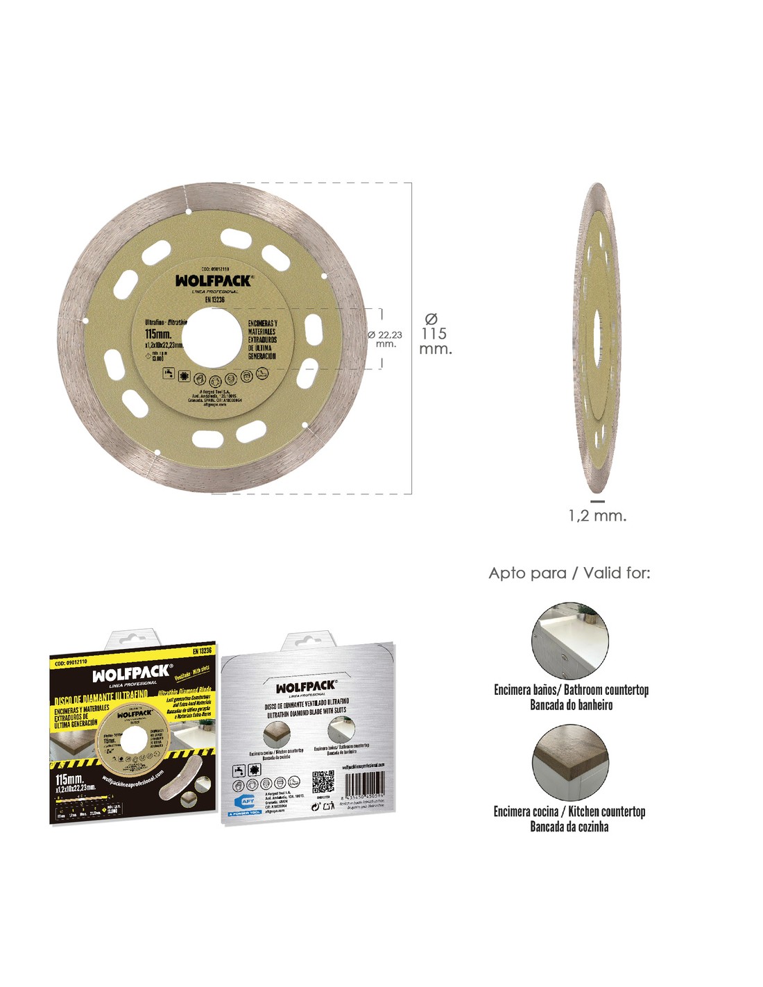 - Disco diamantado versátil para cortar materiales extraduros de ultima generación, como pueden ser encimeras de cocinas o baños.