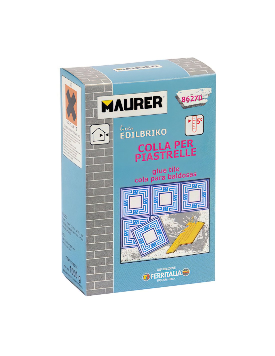 Edil cemento cola maurer (caja 1 kilo). - Para pegar boldosas de revestimiento, cerámica, gres. - Uso interno y externo. - Ideal para trabajos de construcción.