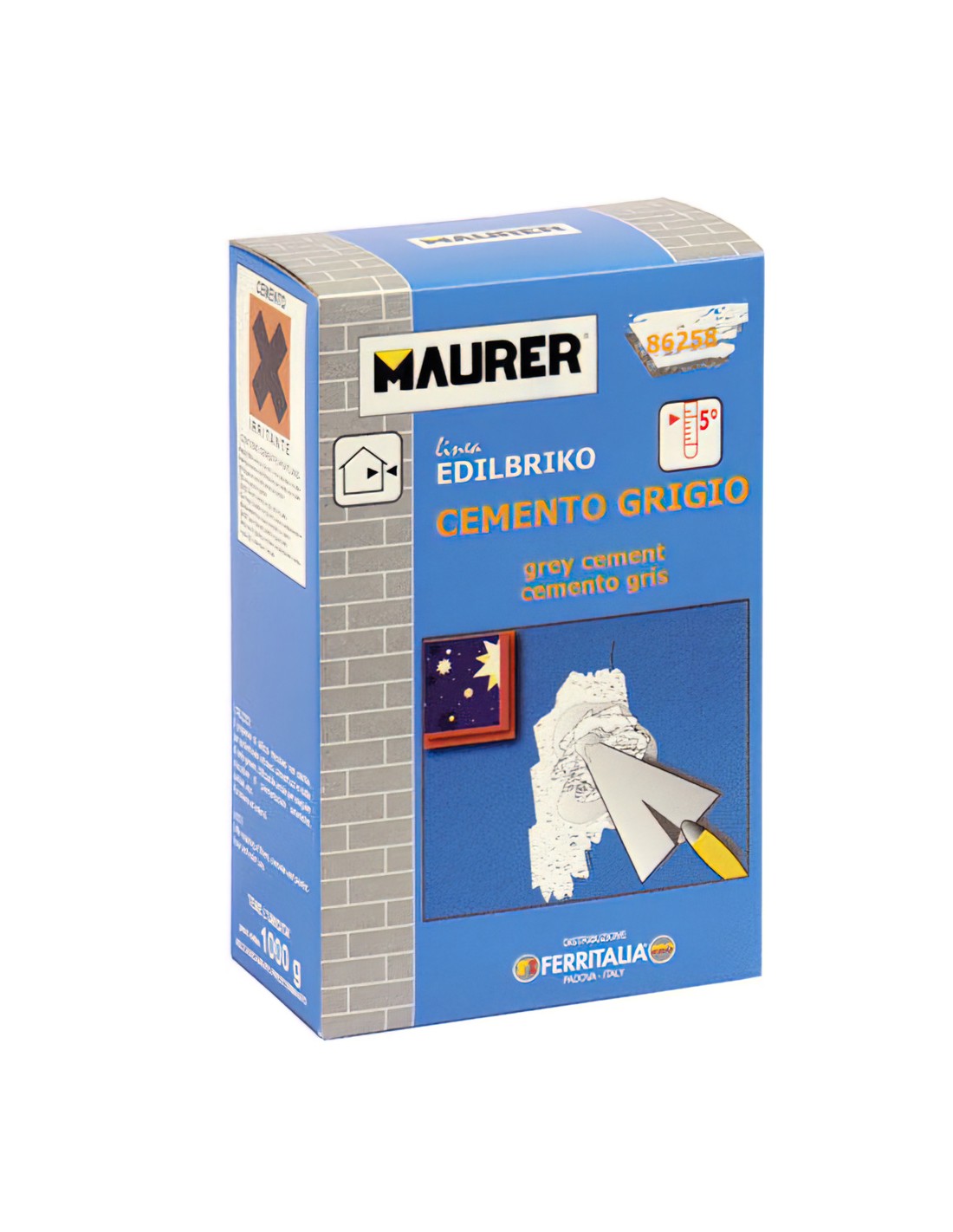Edil cemento gris Maurer (caja 5 kilos). - Pequeñas repaciones de revoques, hormigón y suelos. - Uso interno y externo. - Ideal para trabajos de construcción.