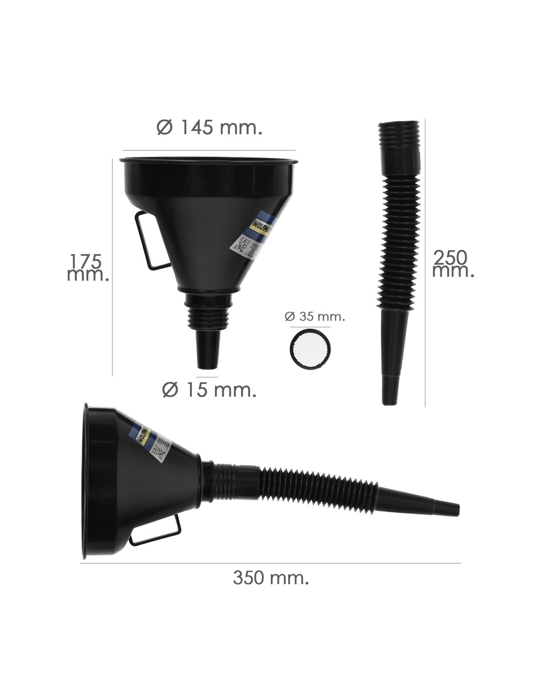 Embudo Boca Ancha Ø 145 mm.Con Prolongador Flexible y Filtro Metalico. Embudo gasoil, embudo gasolina, embudo combustible