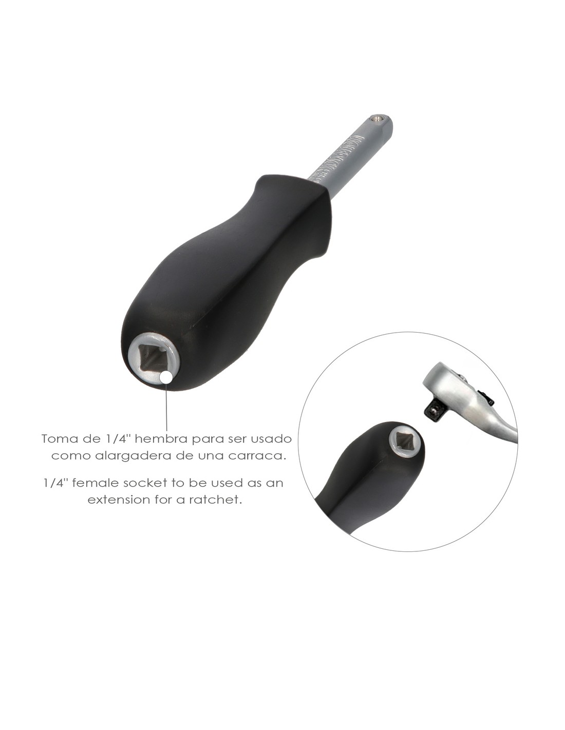 - El mango incorpora una toma de 1/4" hembra para ser usado como alargadera de una carraca.