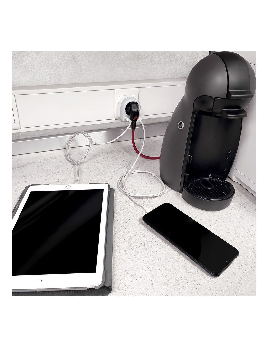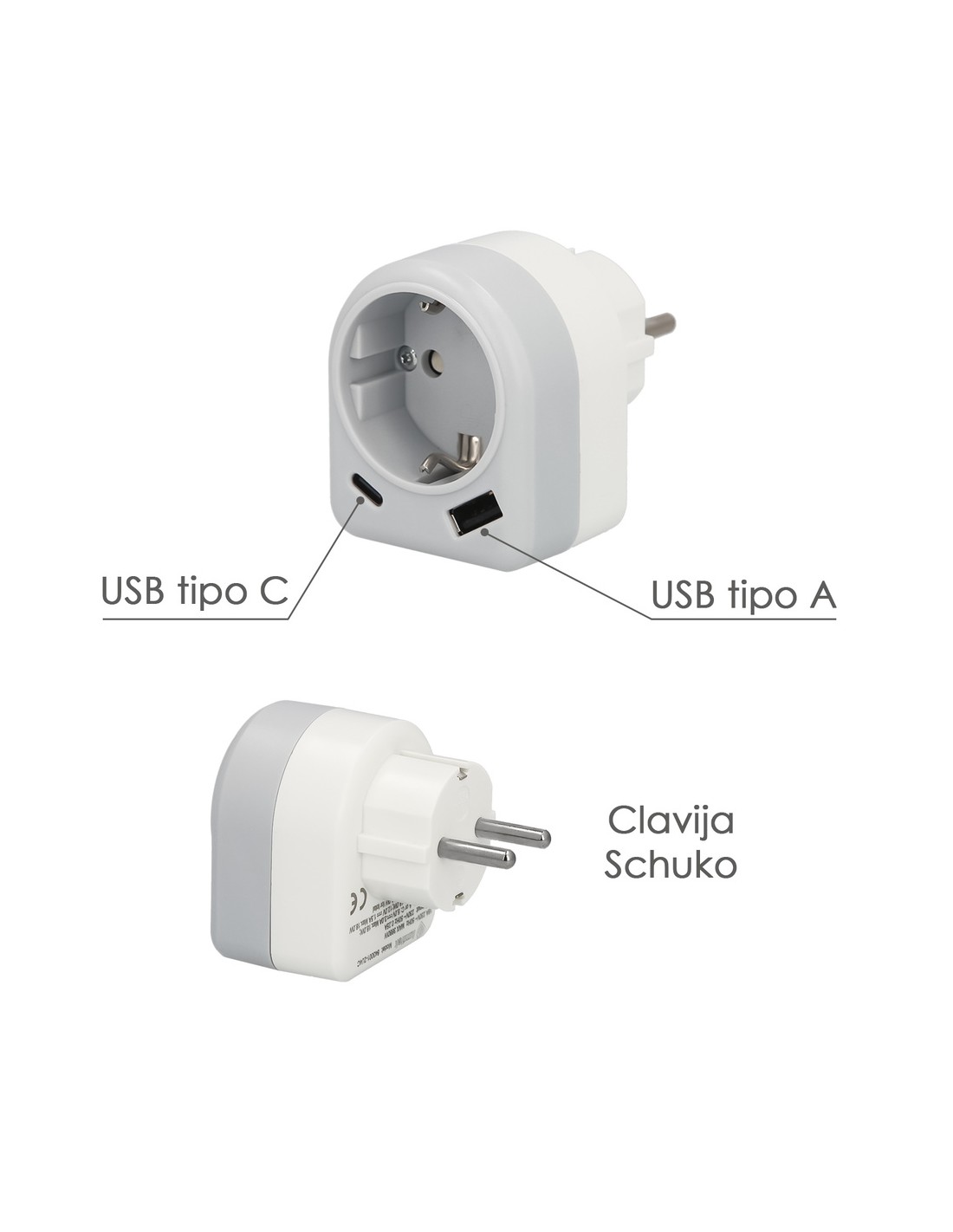 Enchufe / Adaptador Schuko Con 2 Tomas, USB A / C. Potencia Maxima 3680 W. Cargador Moviles, Cargador 2 Tomas, Adaptador Moviles