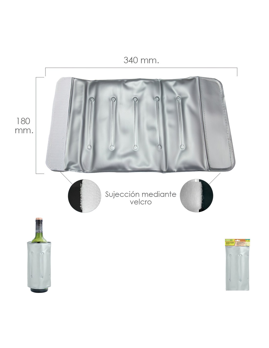 - Funda flexible para congelar. Envuelve la botella para enfriarla y o mantenerla fria durante más tiempo.