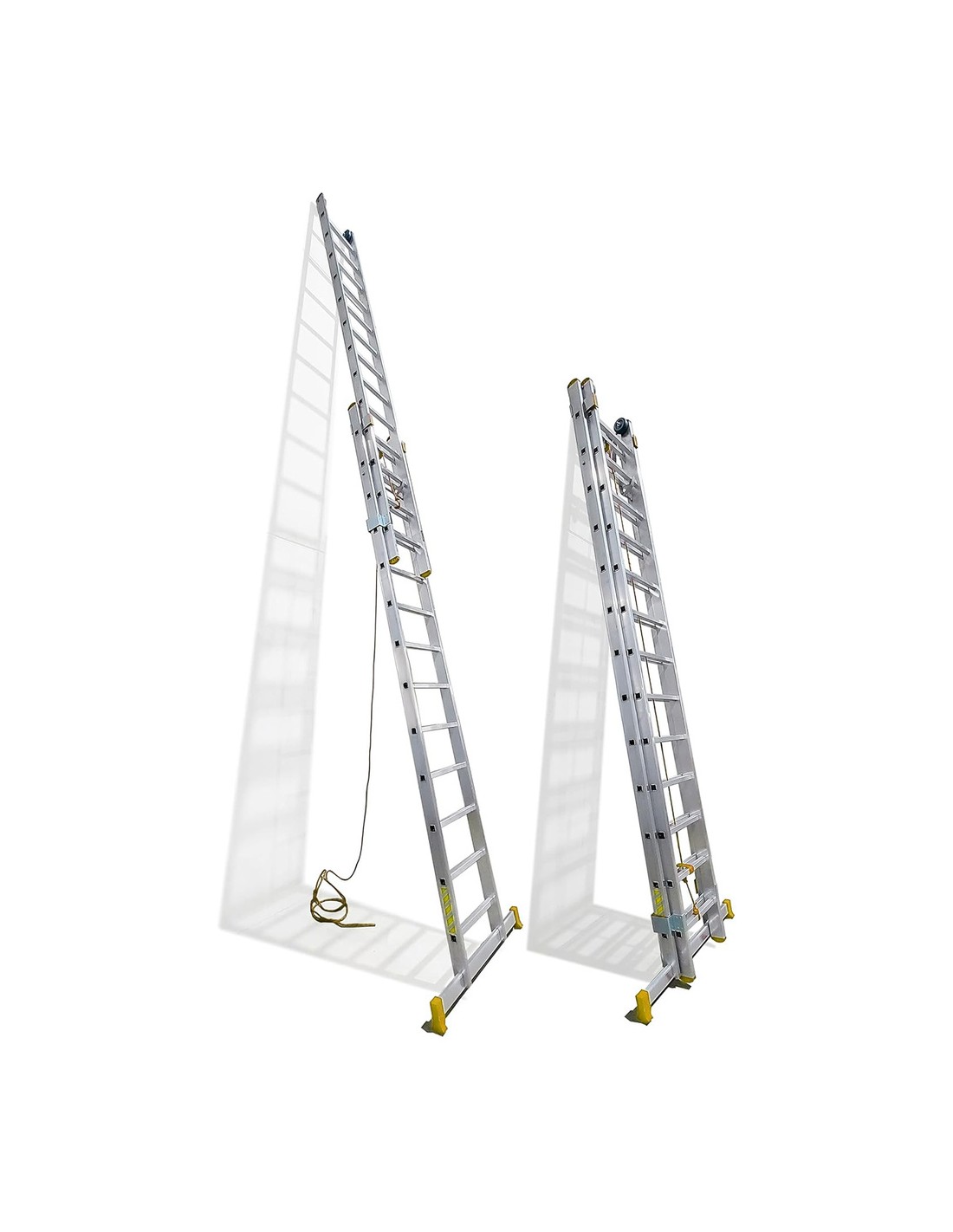 Escalera Aluminio 2 Tramos Mecanica 14 Peldaños. Plegable, Telescópica, Antideslizante, Resistente