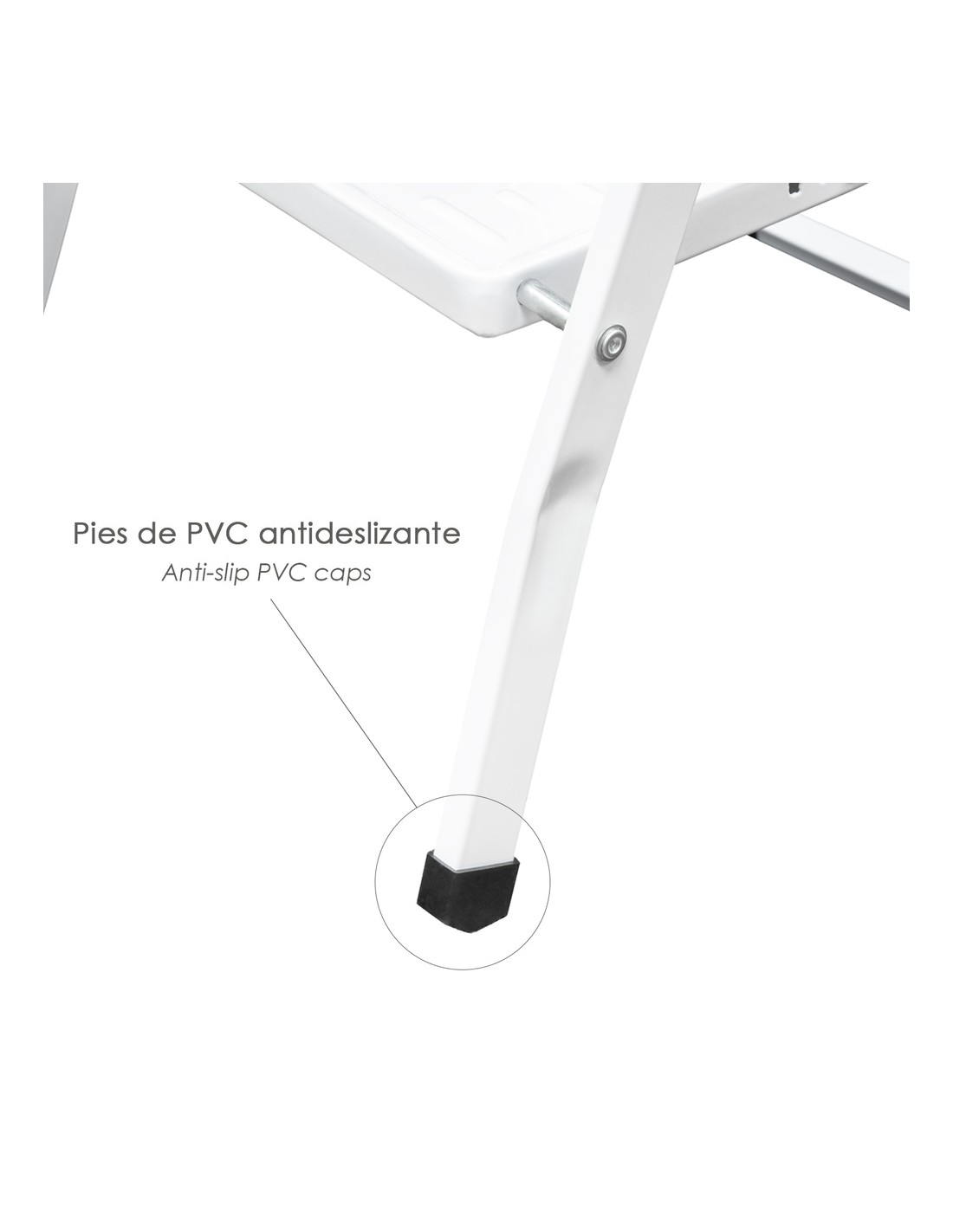 - Patas terminadas en pvc antideslizante para una mayor seguridad.