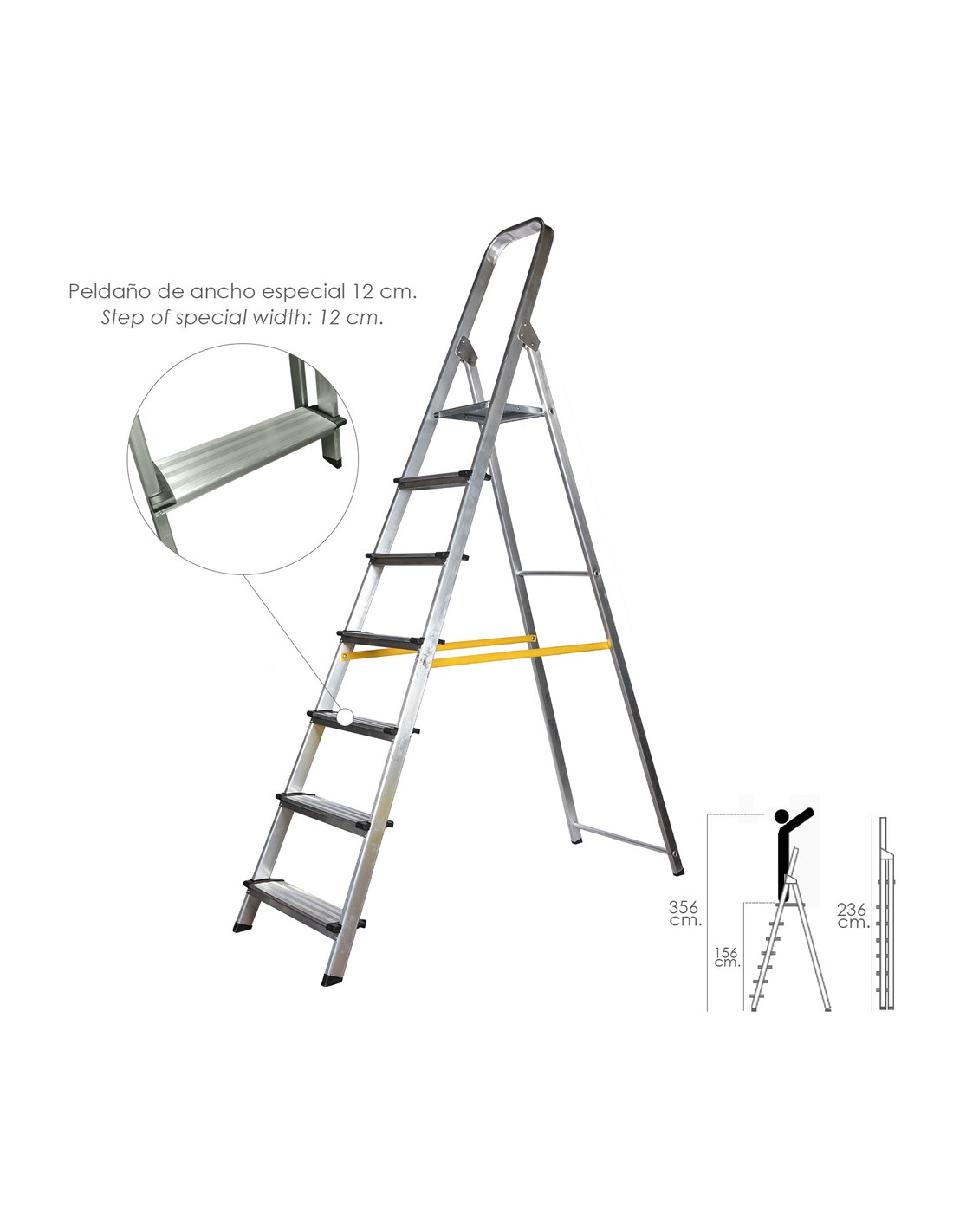 Escalera Doméstica Aluminio Profesional 7 Peldaños 12 cm Grosor.