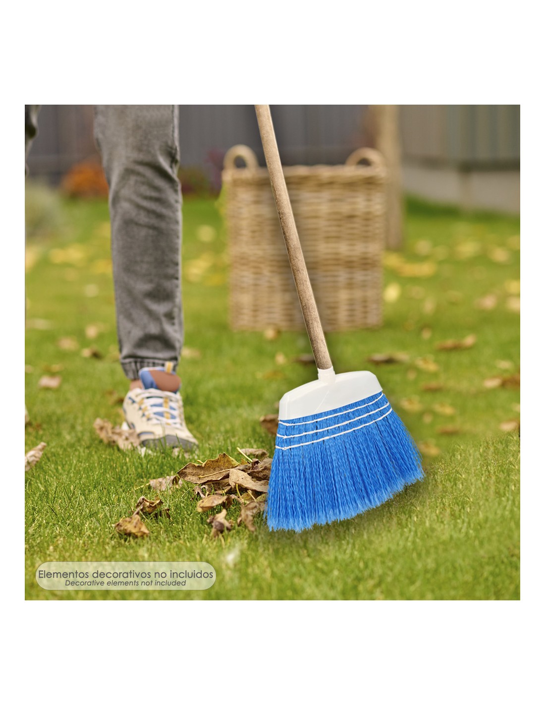Escoba Jardin Azul Con Cordones Sin Mango, Escoba Terrazas, Terrazas, Cocheras, Calles,
