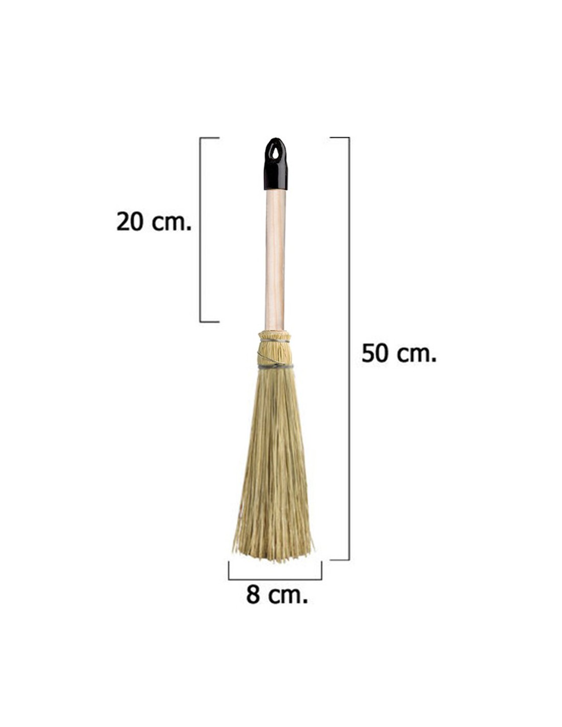 Escoba para chimeneas - Medida: 50 cm. - Mango de madera. - Fibra realizada en palma de mijo. - Articulo tambien conocido como, cepillo chimenea, juego atizadores.