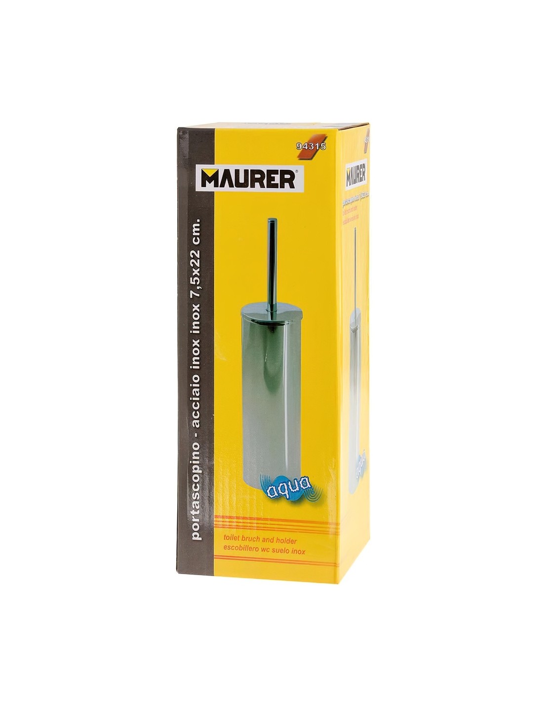 Escobillero Maurer wc suelo inoxidable. - Inoxidable. - Medidas: base ø 10 cm. altura 27 cm. - Diseño elegante y sofisticado. - Ideal para colocar en el cuarto de baño, tambien se puede usar con otros accesorios de baño.