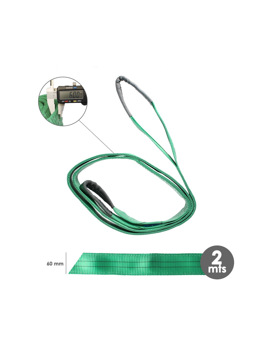 Eslinga Plana Doble Banda 2.000 Kg. Factor Seguridad 7:1, Longitud: 2 Metros Ancho 6 cm. 100% Poliester. Color Verde