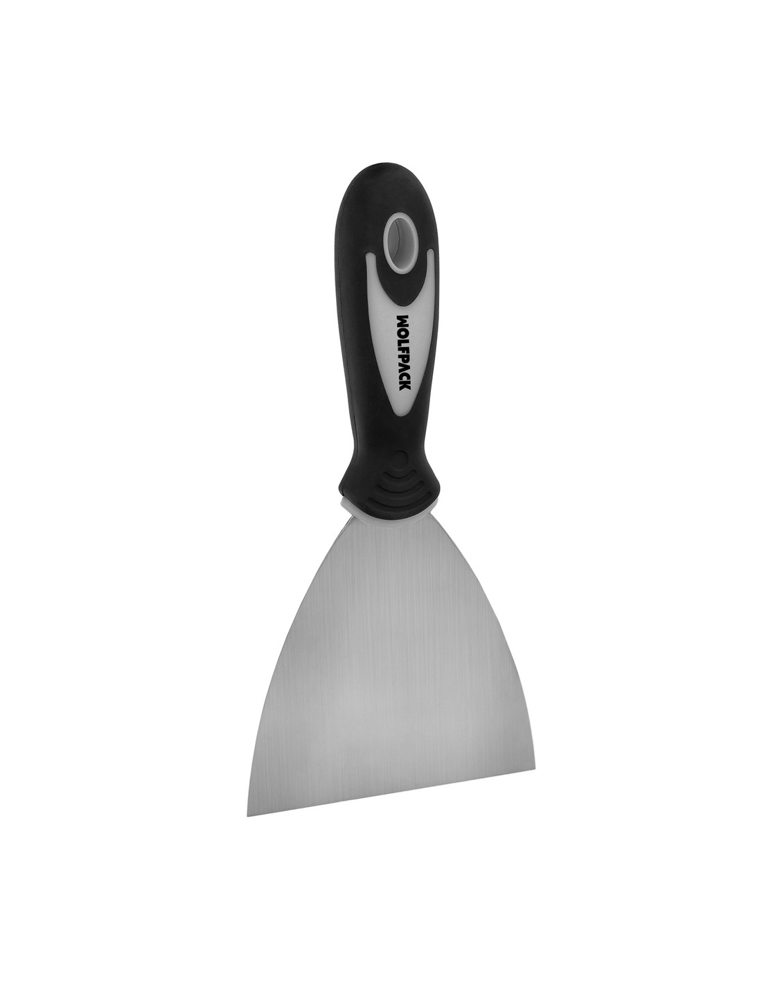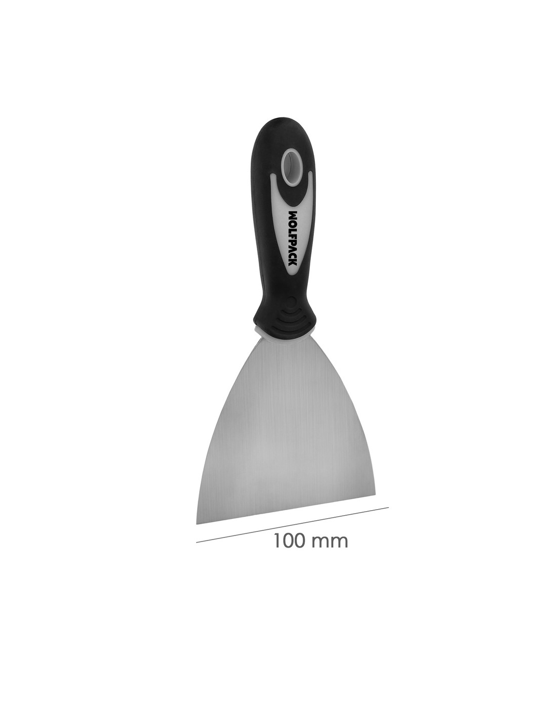 - Espatula fabricada en acero inoxidable de 100 mm. y mango ergonomico de goma.