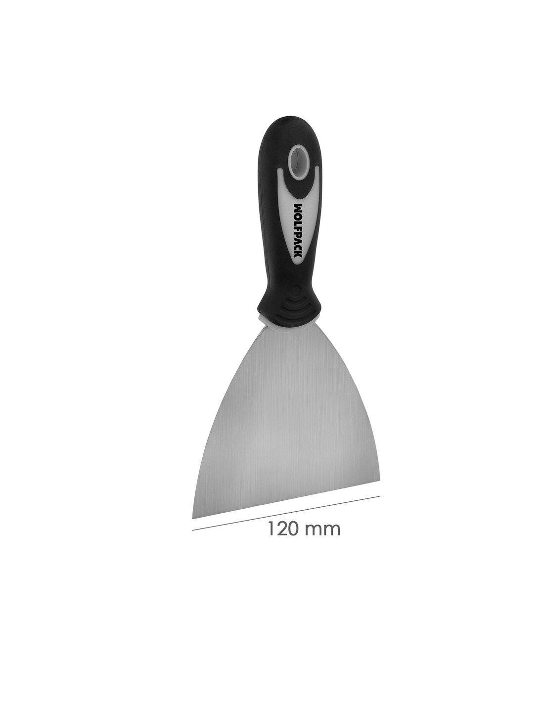 - Espatula fabricada en acero inoxidable de 120 mm. y mango ergonomico de goma.