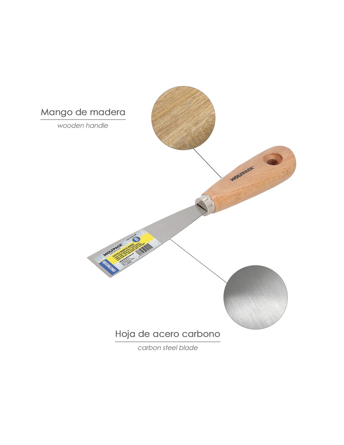 - Ideal para ser usada en diferentes trabajos como enmasillar, raspar pinturas, rellenar de huecos con yesos o masillas, eliminar pequeñas irregularidades, etc.