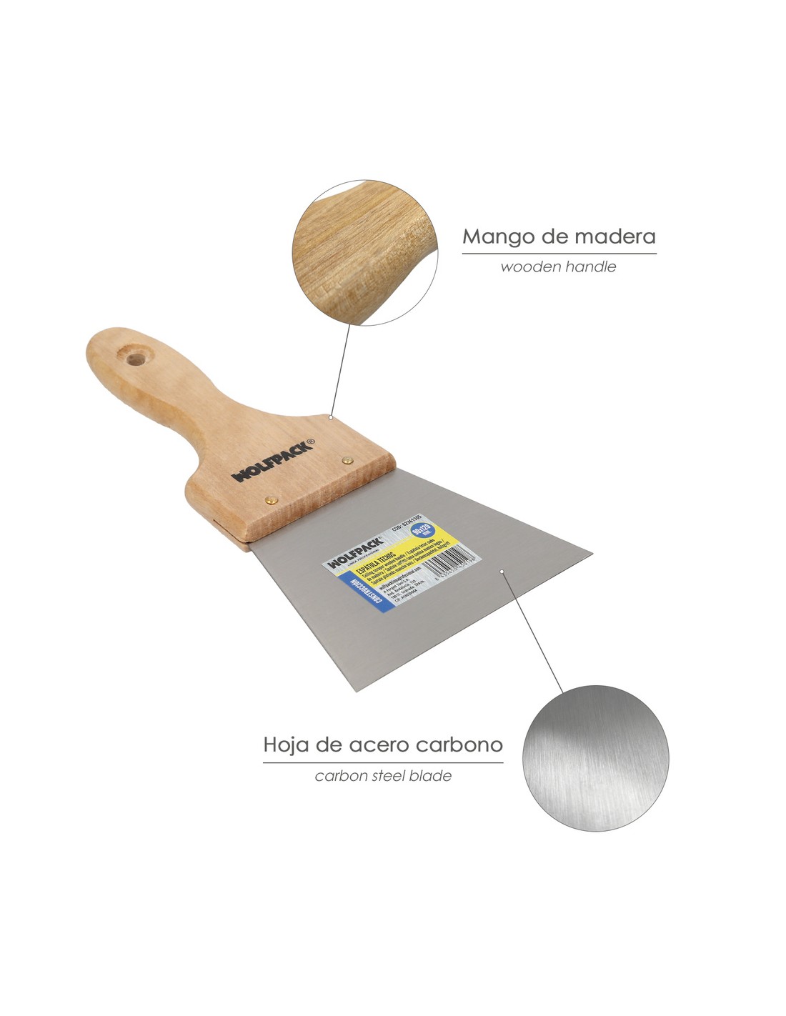 - Ideal para ser usada en diferentes trabajos como enmasillar, raspar pinturas, rellenar de huecos con yesos o masillas, eliminar pequeñas irregularidades, etc.