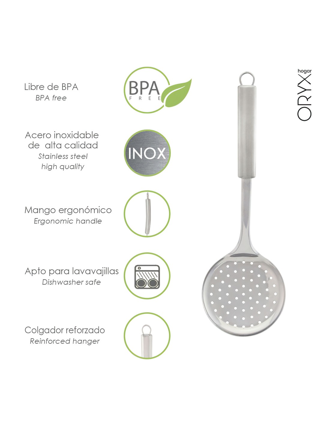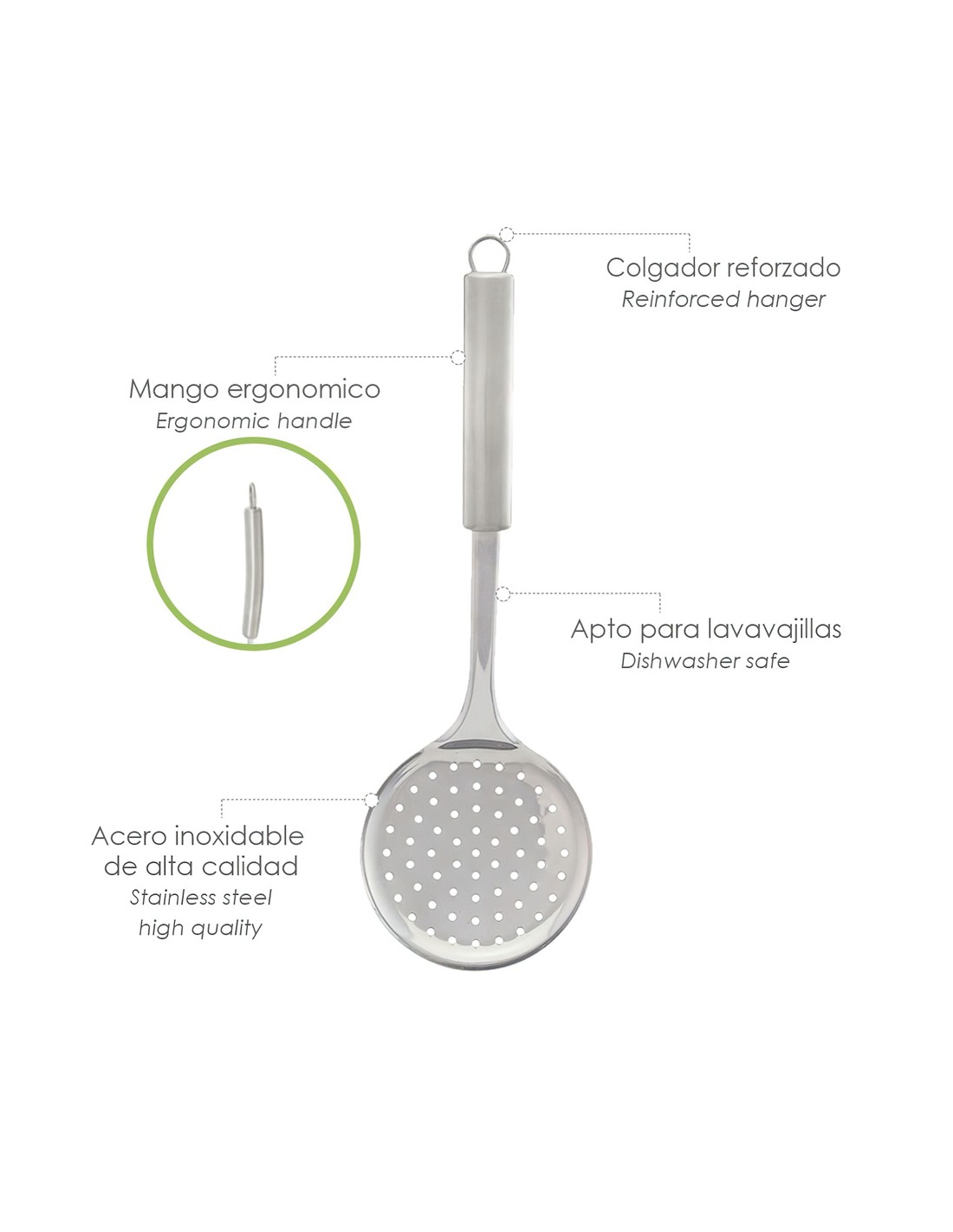 - Realizado en acero inoxidable de alta calidad, apto para su lavado en el lavavajillas.